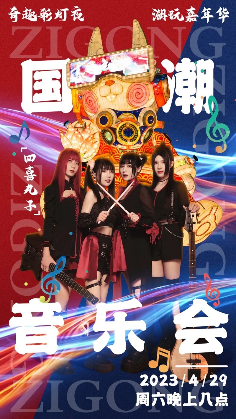 4月29日晚20:00起,中华彩灯大世界将举办自贡市首场次元国风音乐会,众多摇滚乐队、跨次元国风乐队现场演绎,为游客带来一场中国风+二次元的跨界新体验。