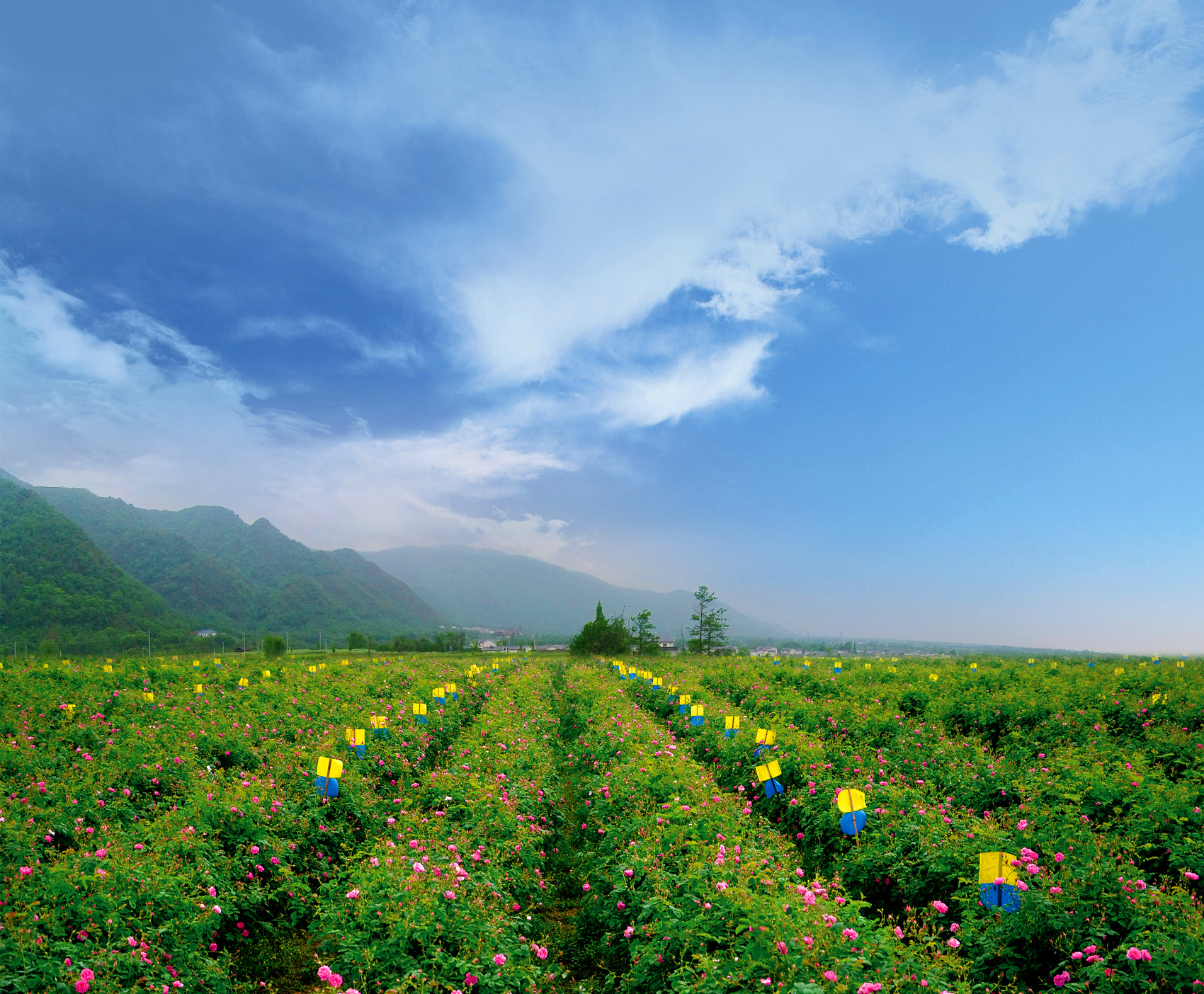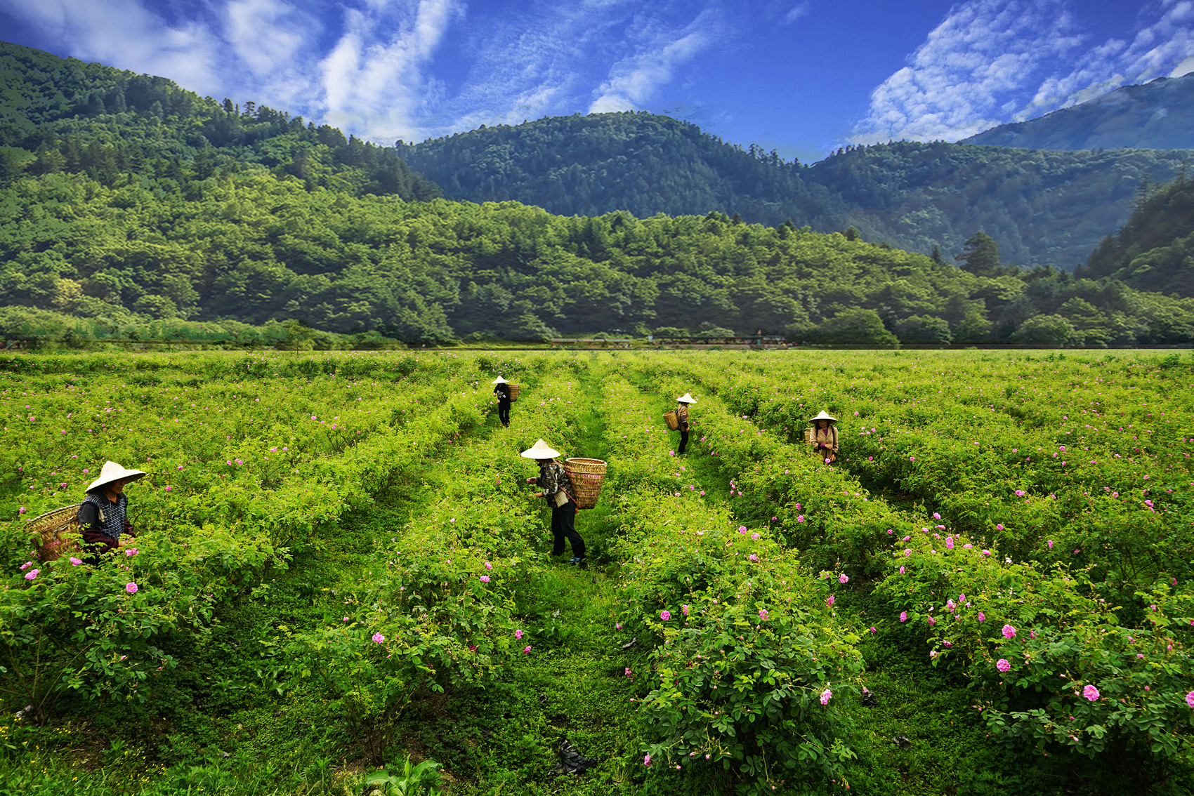 2008年“5·12”地震后,绵竹在沿山建成大马士革玫瑰种植基地。经过多年的发展,目前已成功种植大马士革玫瑰2万余亩,并以玫瑰产业为基础,形成了种植、精深加工、研发、生产、销售和服务为一体的玫瑰生态全产业链,推动该市一二三产业融合发展。而玫瑰产业的发展壮大,让周边村民也从中受益,他们或是到基地务工,或是开办农家乐,或是摆摊售卖玫瑰产品,极大地振兴了乡村经济。
