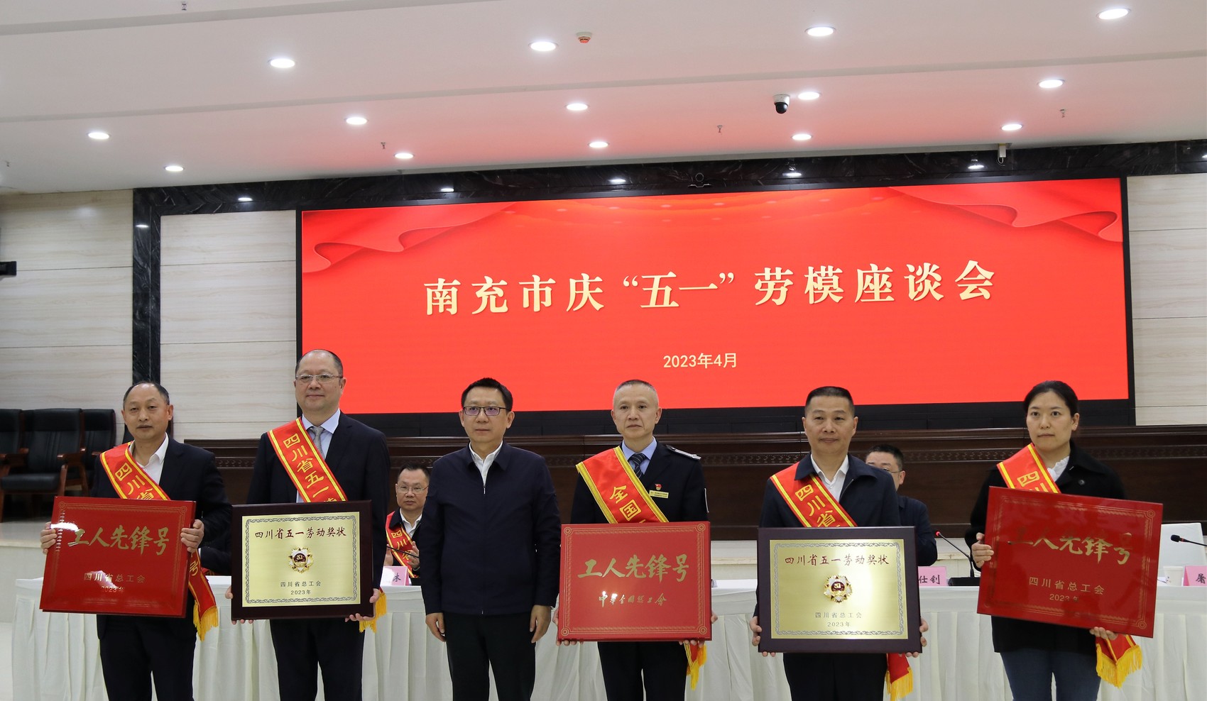 4月26日,“五一”国际劳动节来临之际,南充邀请部分劳模先进代表、获奖单位、企事业单位负责人代表和基层工会代表交流发言,为获得者颁奖。