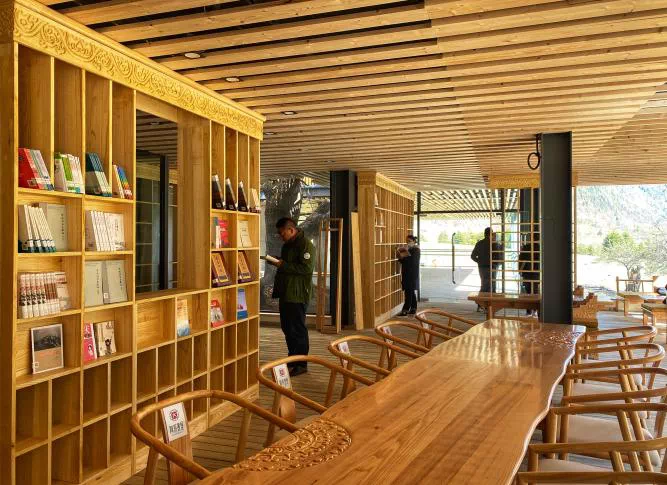 阿来书屋结合四川省图书馆公共数字文化驿站、藏羌彝数字文化长廊建设工作,以“公共文化服务+景区”的创新模式,将文化送进景区,让旅游宣传文化。结合公共数字文化建设和图书馆总分馆制建设,阿来书屋按照“试点先行,全面推广”“州县景区共建共享”的建设思路,与四姑娘山景区、黄龙景区、达古冰川景区、马尔康柯盘天街、红军长征纪念碑碑园、九寨沟景区等进行整合建设。如今,阿来书屋是集阅览、咖啡、茶饮、文创产品等多种时尚元素于一体的阿坝文旅新IP。目前建成的7个阿来书屋已全面对外开放,受到了读者朋友的喜爱。