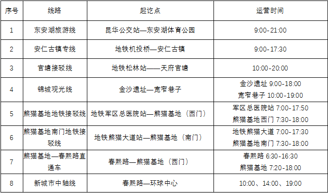 此外,成都公交还精心推出东安湖旅游线、安仁古镇专线、黄龙溪欢乐田园假日专线、樱桃采摘专线、官塘接驳线等假日公交线,城市观光、绿道踏青、欢乐采摘、古镇游览,总有一款满足您的期待。