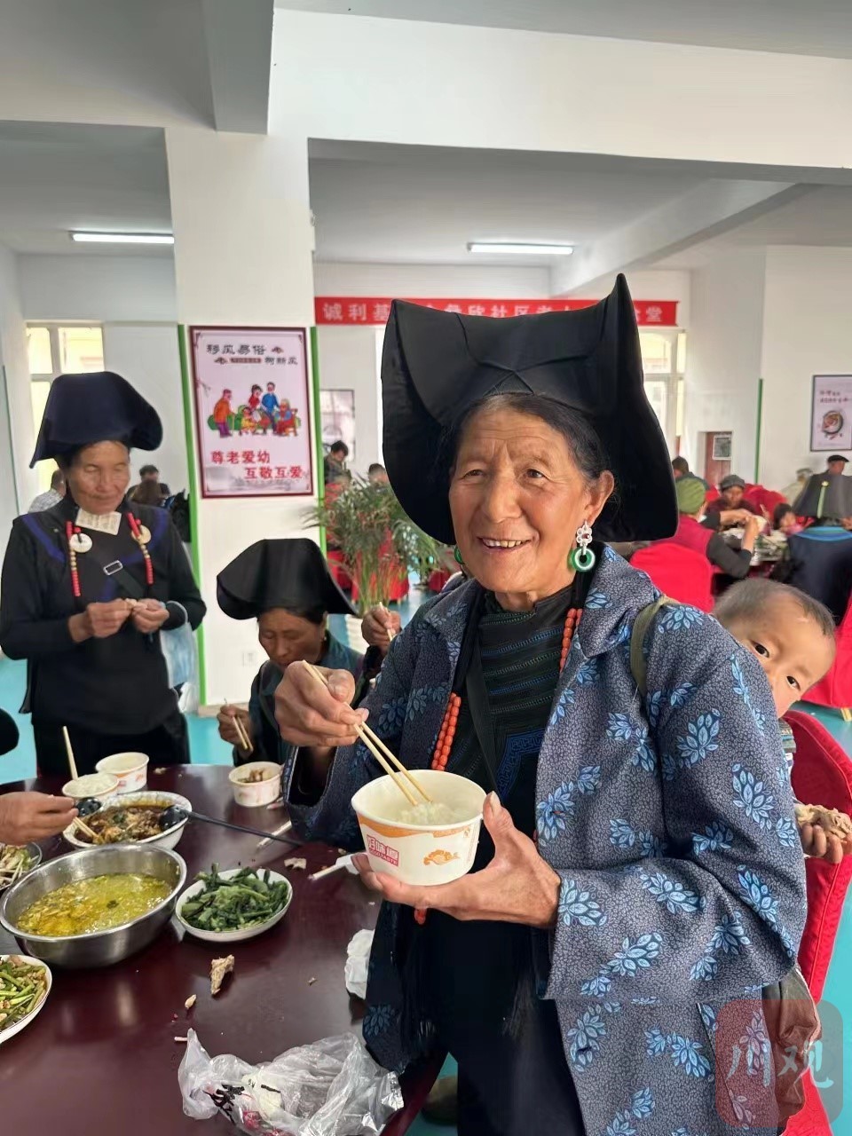 “瓦吉瓦(彝语,意思为‘好得很’)!”4月28日中午,凉山州喜德县光明镇彝欣社区,数十名彝族老人欢聚一堂,由彝欣社区联同四川诚利公益慈善基金会开设的老人公益食堂正式开放,72岁的阿育瓦苦老人在用餐后满意地伸出大拇指。