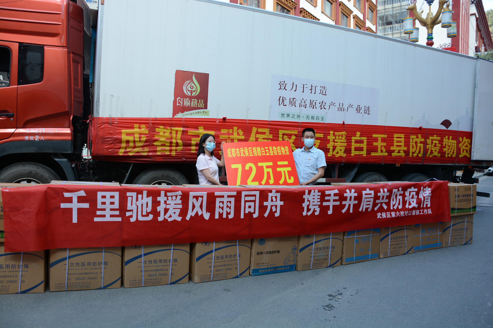 去年8月,面对突如其来的遭遇战,武侯区第六批对口帮扶工作队闻“疫”而动,积极向武侯区委区政府请示协调,得到了区委区政府大力支持。区委统战部连夜多方协调筹措物资,由国药集团西南医药仓库调拨了10大类334箱防疫物资,总价值72万元。