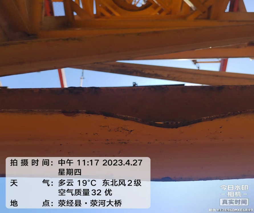 “塔机回转限位器应保证塔机朝单一方向旋转不超过一圈半,但现场检查1号塔机转了3圈都未停下来,回转限位失效。”华西集团机械专家蒋松涛检查发现。除此之外,1号塔机还存在防断绳装置缺失、变幅小车后限位装置失效、标准节变形等问题。