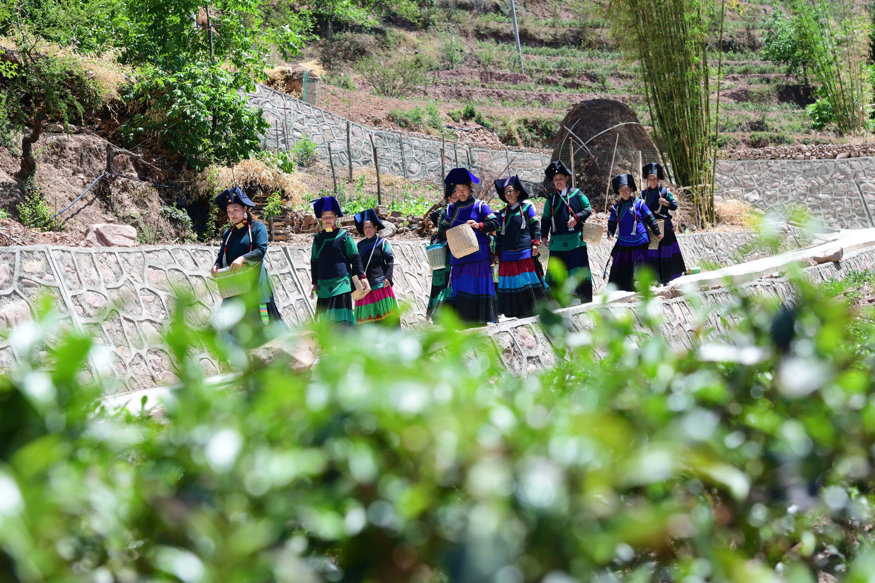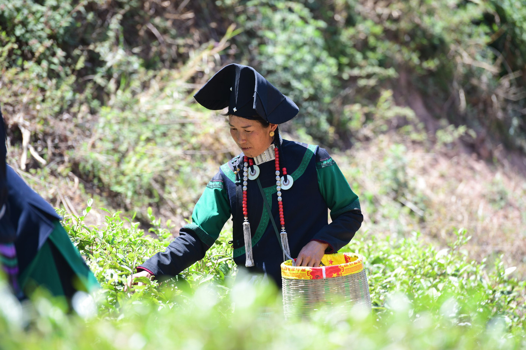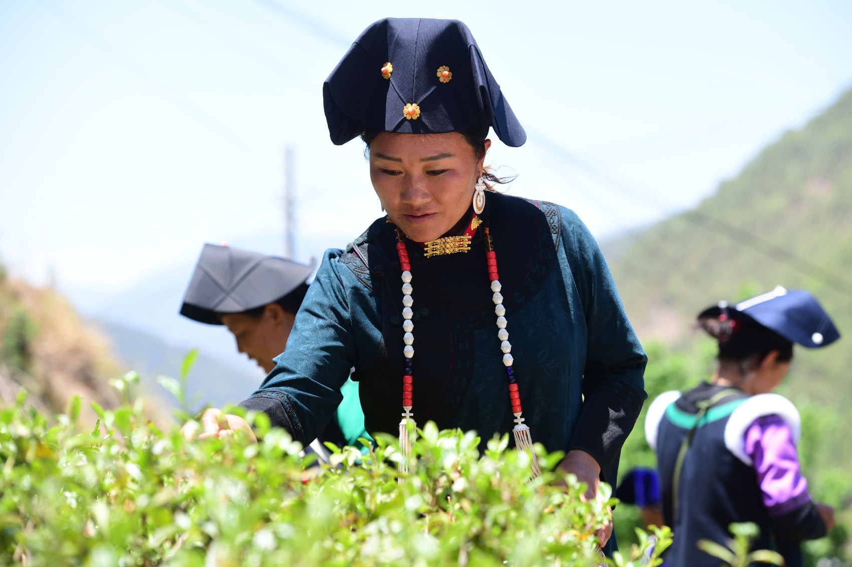 “孙水河中水,灵关古道茶。”成片种植地茶树,在阳光的照耀下发出油亮的光泽,一群彝族妇女背着竹制的采茶篓,穿行在茶林间,采摘茶叶。这是4月27日,川观新闻记者在四川凉山彝族自治州喜德县且拖乡且拖村看到的情景。