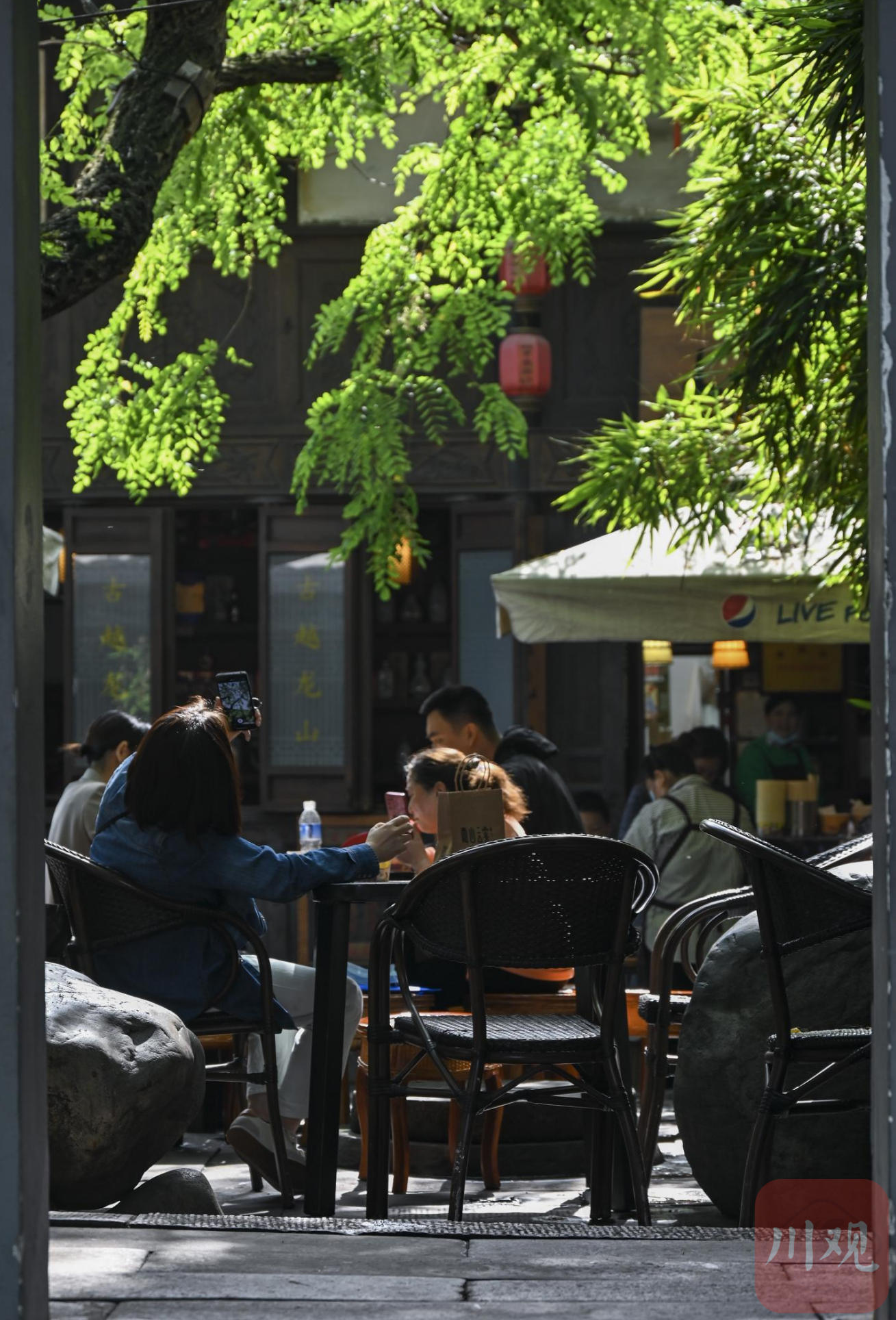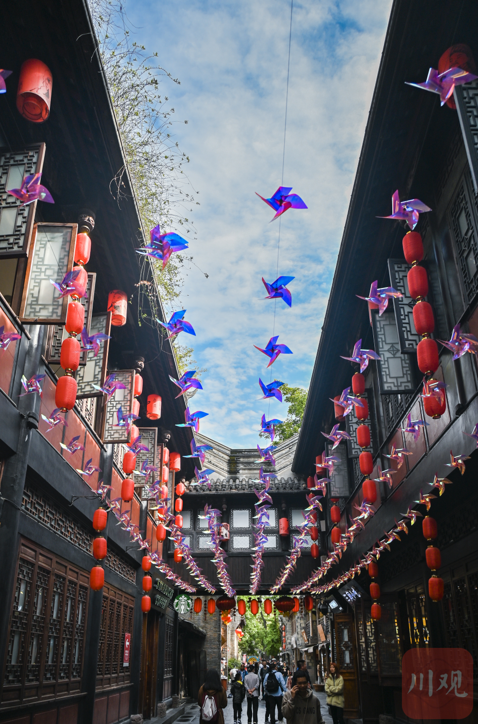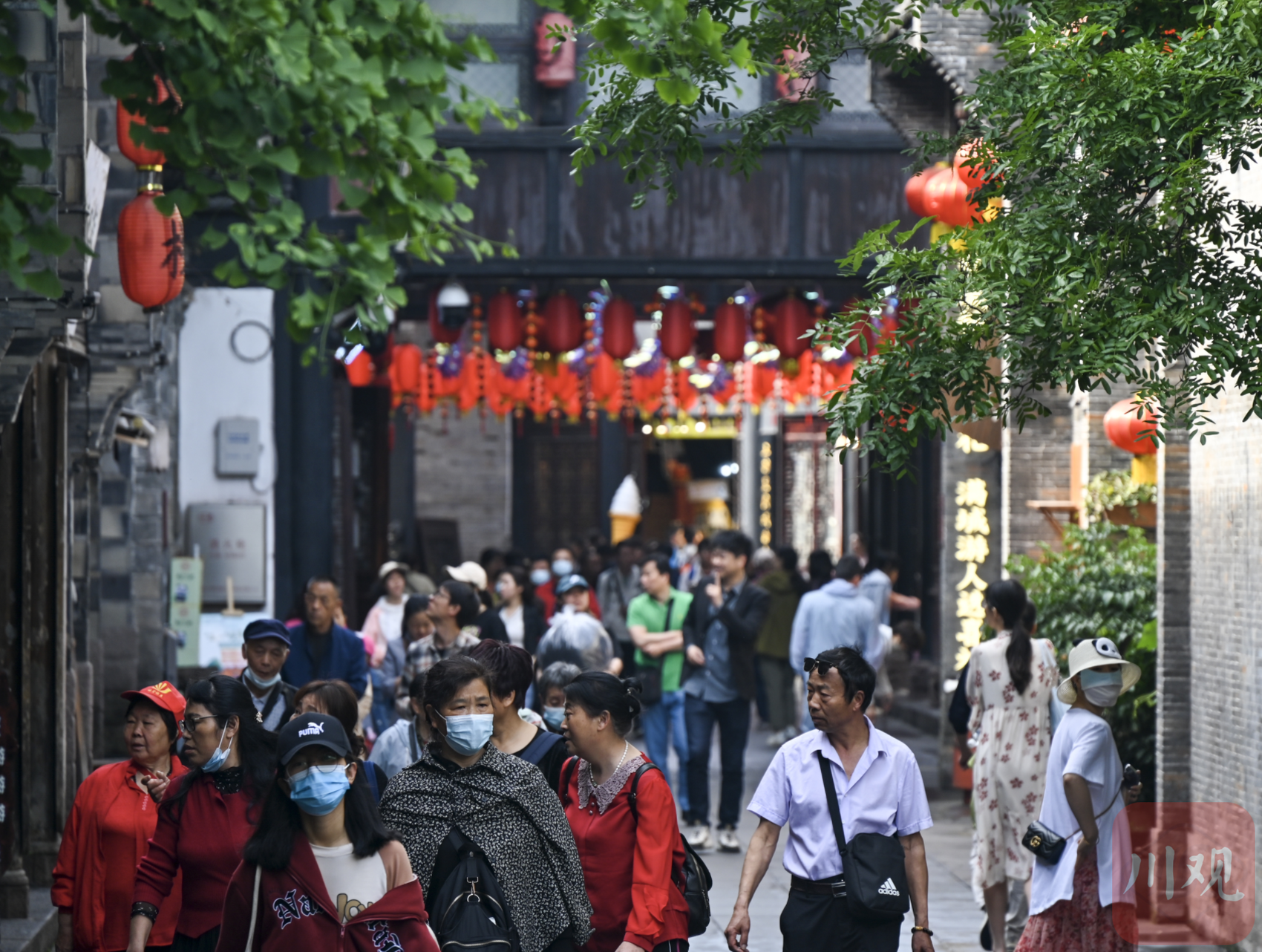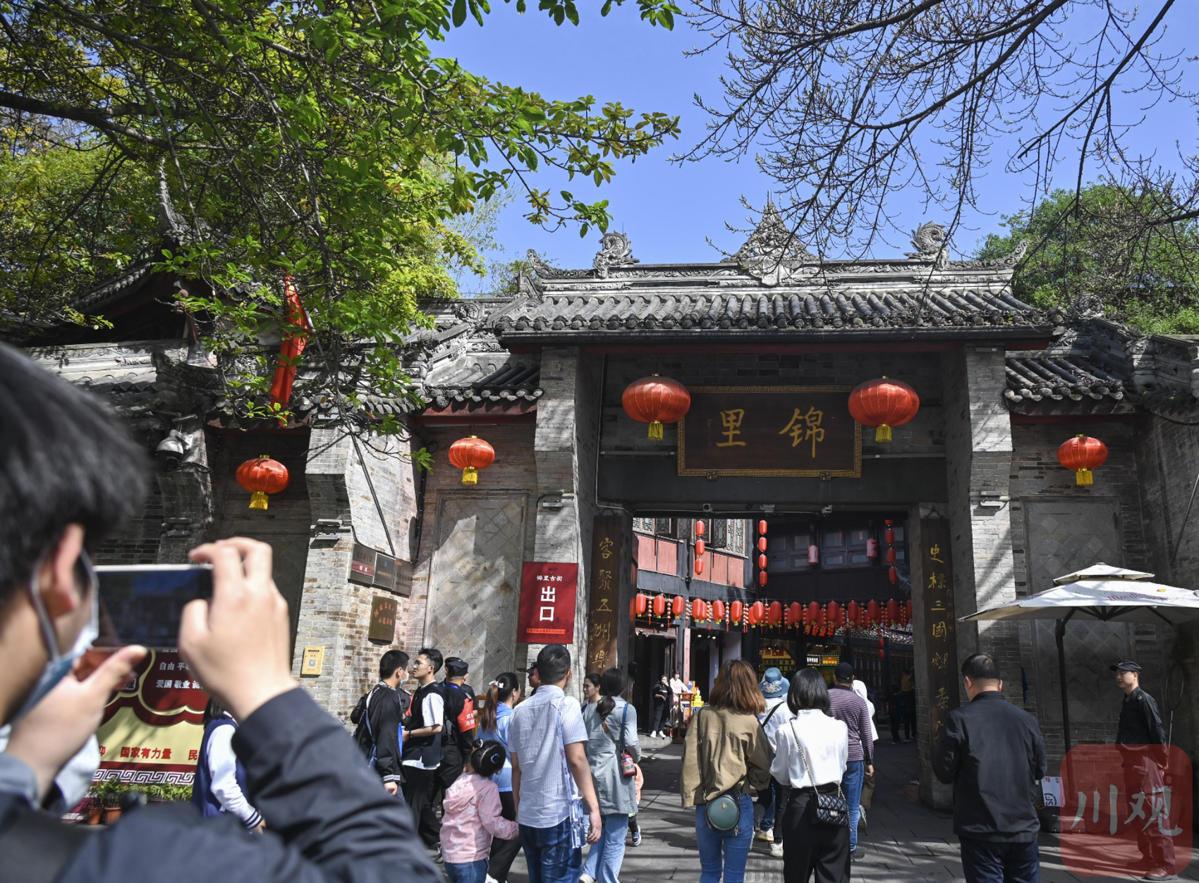 4月29日,五一假期第一天,成都市锦里景区里,游客们看川剧、品小吃、体验三国文化,享受安逸生活,度过愉快假期。