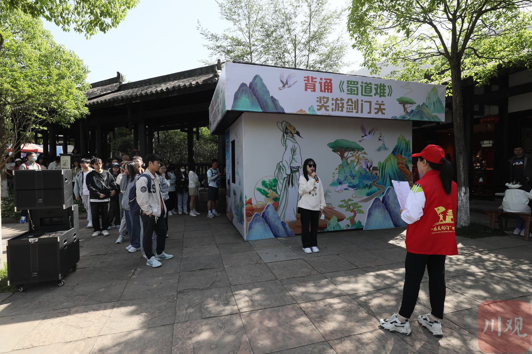 游客参与背诵《蜀道难》领门票活动