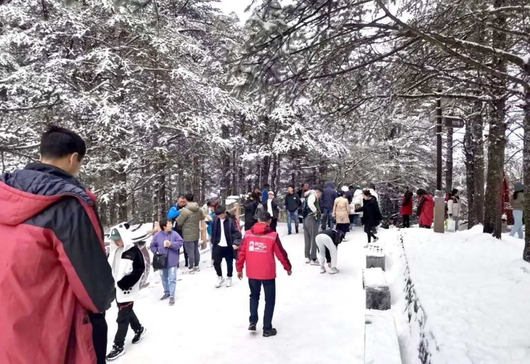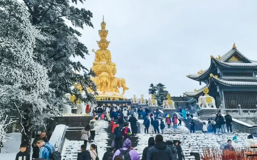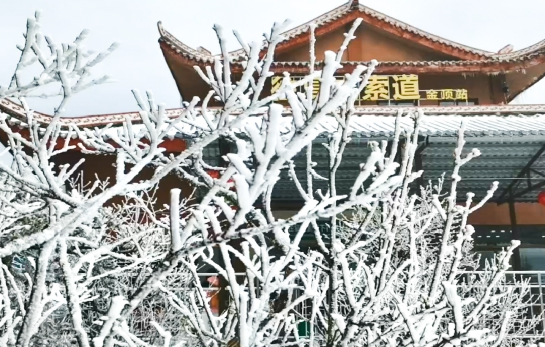 “没想到这个时间居然还能在峨眉山见到雪,有点童话世界的感觉,无法用言语表达自己内心的喜悦感。”从贵州来乐旅游的何港直呼不可思议。