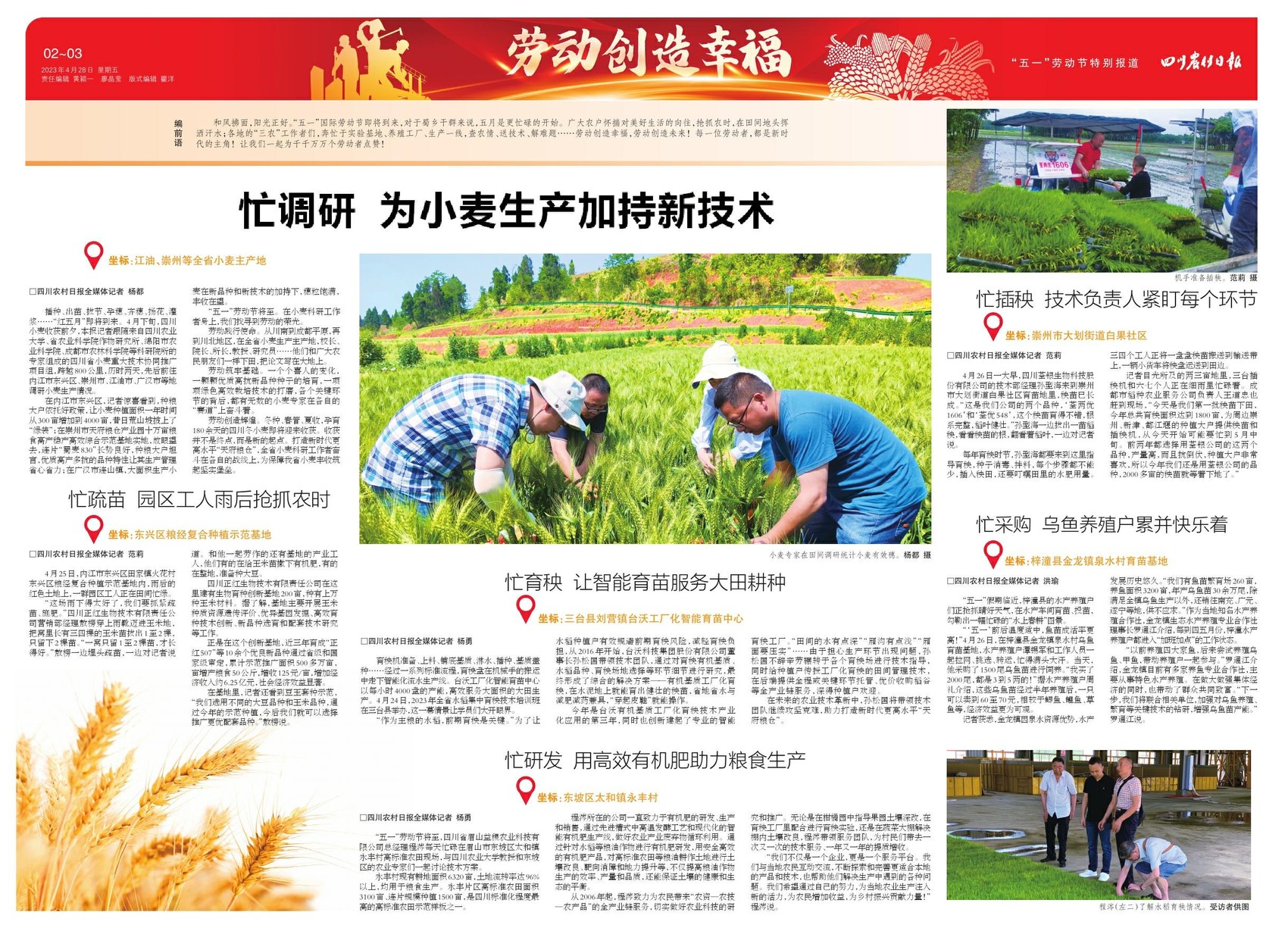 劳动践行使命。从川南到成都平原,再到川北地区,在全省小麦生产主产地,校长、院长、所长,教授、研究员……他们和广大农民朋友们一样下田,把论文写在大地上。