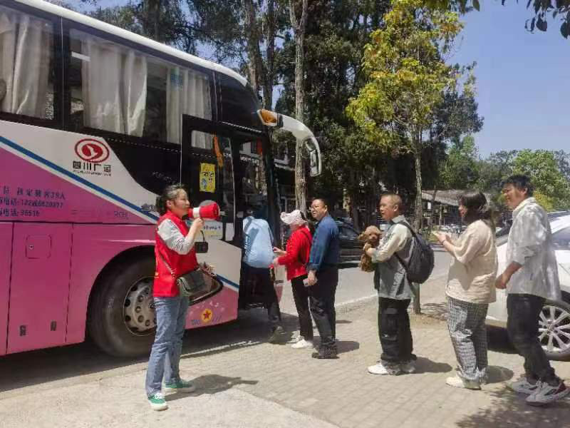 同时为全时段、全过程、全方位为游客提供优质服务,在剑门关古镇、各免费停车站、游客中心等35个点位处设立党员志愿服务点,为游客免费提供旅游咨询、门票预订、扫码服务以及应急药品、开水等服务。成立党员流动服务队,将服务范围从景区内延伸至高速路出口、远端交通管制点以及公交摆渡车上等。(剑阁县文旅体局供图)