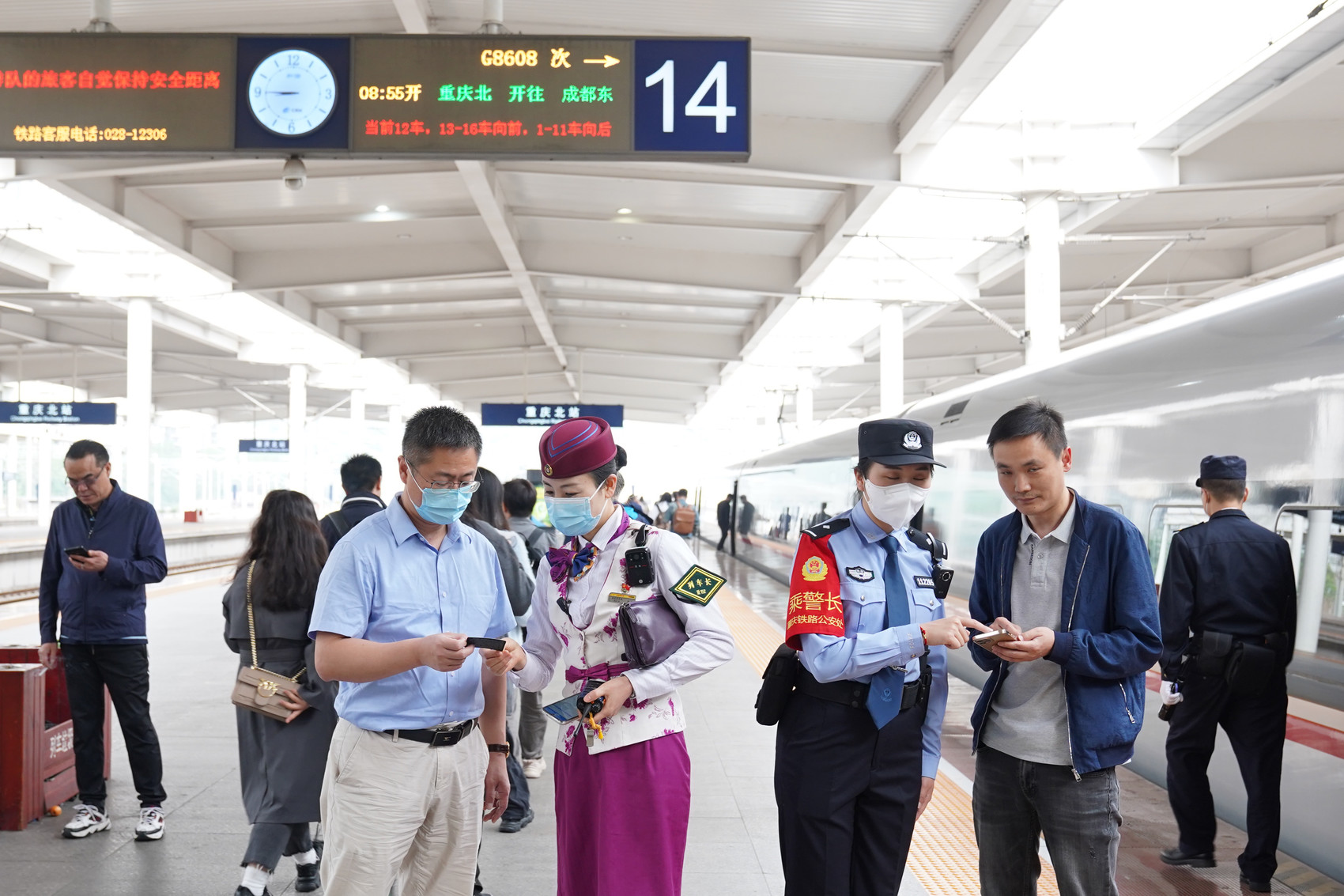4月30日,假期第二天,记者从中国铁路成都局集团有限公司(以下简称“铁路成都局”)获悉,针对假期旅游客流激增,铁路成都局加大运力投放,仅成渝间就开行动车组近200列。