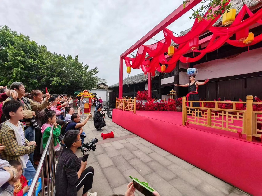 4月29日一大早,自贡杂技团就带着精彩的杂技节目,出现在4A级景区一一富顺县赵化古镇。由当地政府主办的“赵化喊你吃坝坝宴”主题文旅活动,包括体验中式婚礼、露天电影、民俗集市等,此次特别邀请自贡杂技团的加盟表演,为古镇增添文艺气氛。