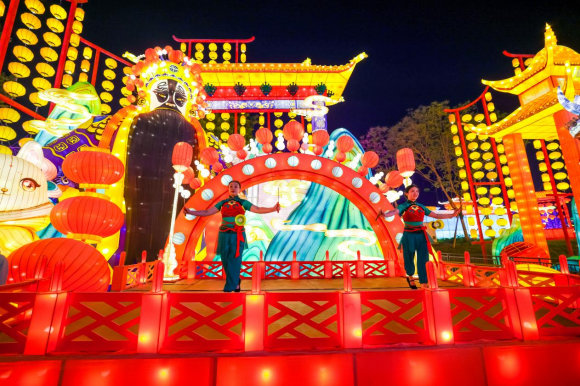 4月29日晚,彩灯大世界里更是人山人海,前来观灯的外地游客洋溢着喜悦的笑容,自贡杂技团派出六个节目参与五一假期园区内的演艺,赢得现场观众阵阵掌声与欢笑。