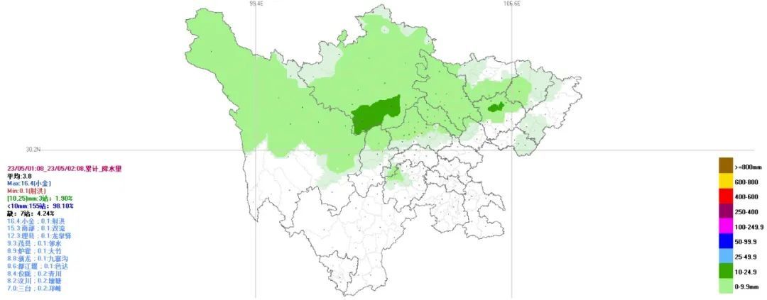 昨天08时到今天08时,盆地南部多云间阴,其余地方阴天间多云有阵雨,其中南充局部中雨;川西高原大部有阵雨,局部中雨,攀西地区晴间多云。