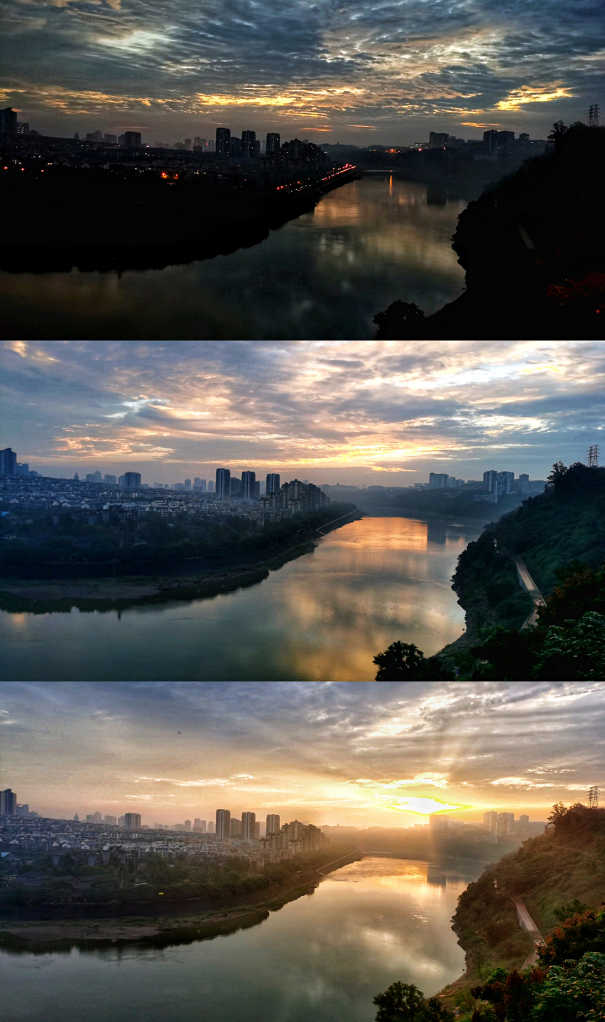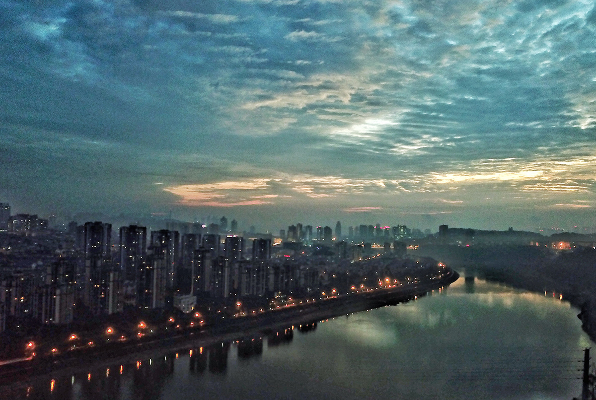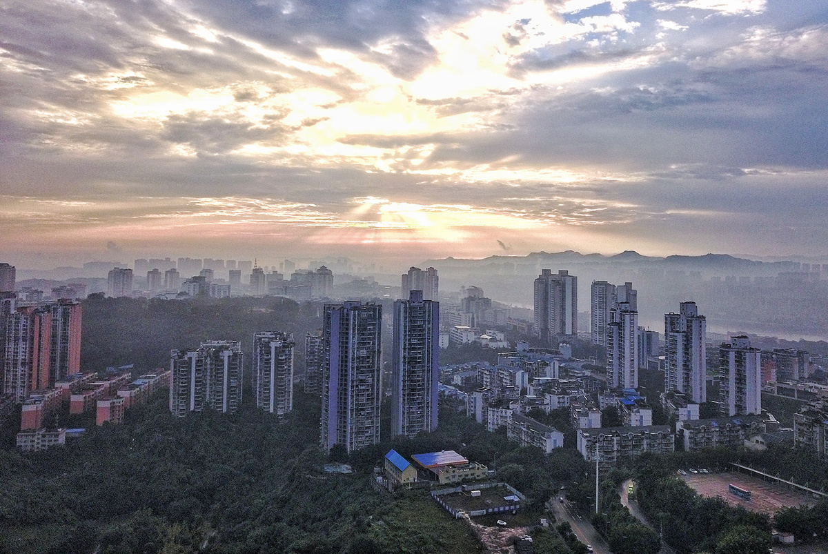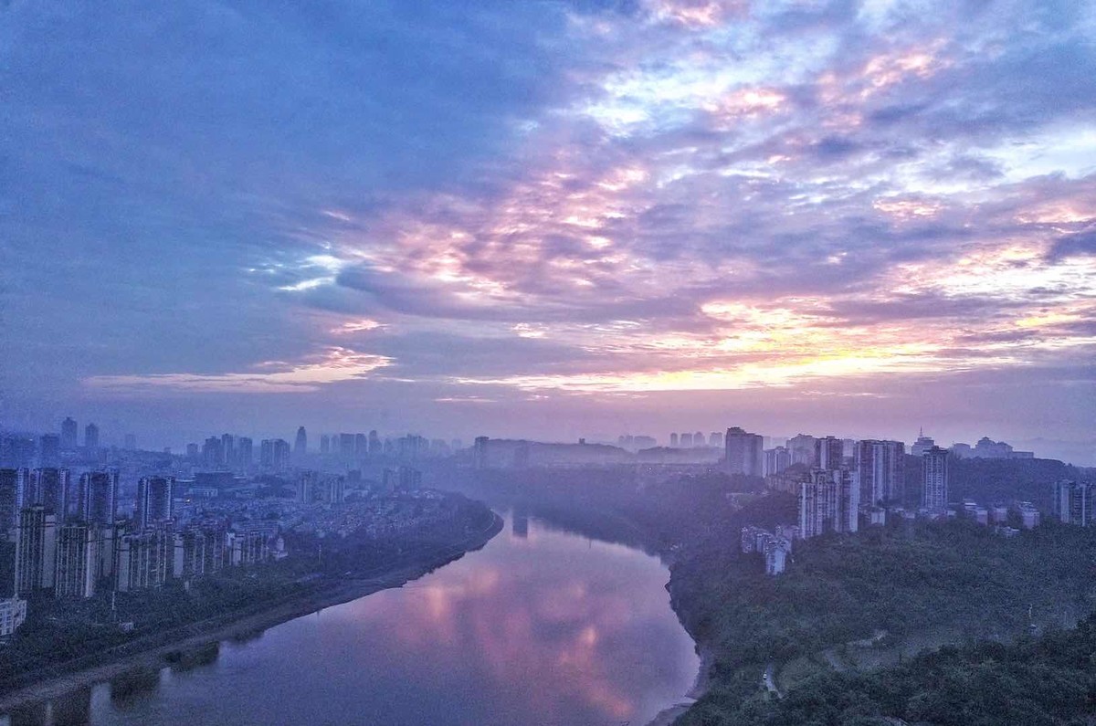 10月21日清晨,泸州阔别了多日的阴雨天气,迎来晴天。天空放晴后,清晨的太阳缓缓升起,拨开云雾露出了“笑脸”。