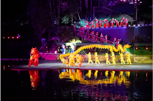 “非常震撼!演出既有壮观的视觉效果,也包含了当地的文化民俗元素。”来自宜宾的游客罗先生带着一家三口,驱车两小时来到威远看演出,随后还来到当地的船石湖、骑龙坳、古佛顶等景点游玩。