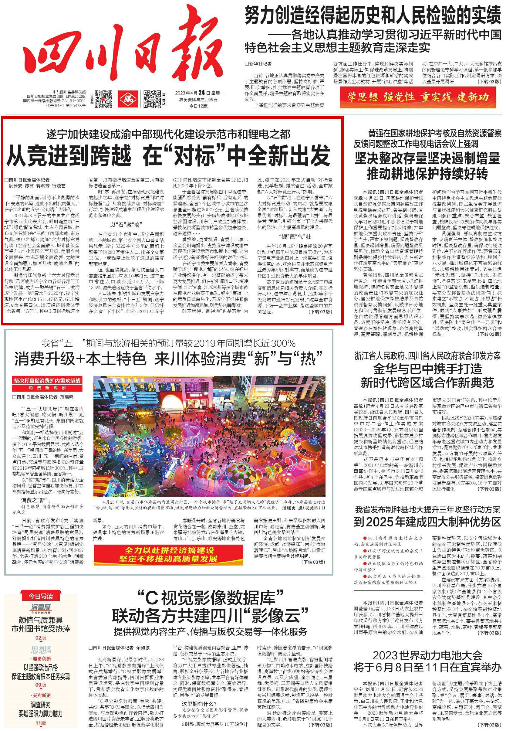 四川日报头版转03版《遂宁加快建设成渝中部现代化建设示范市和锂电之都 从竞进到跨越 在“对标”中全新出发》