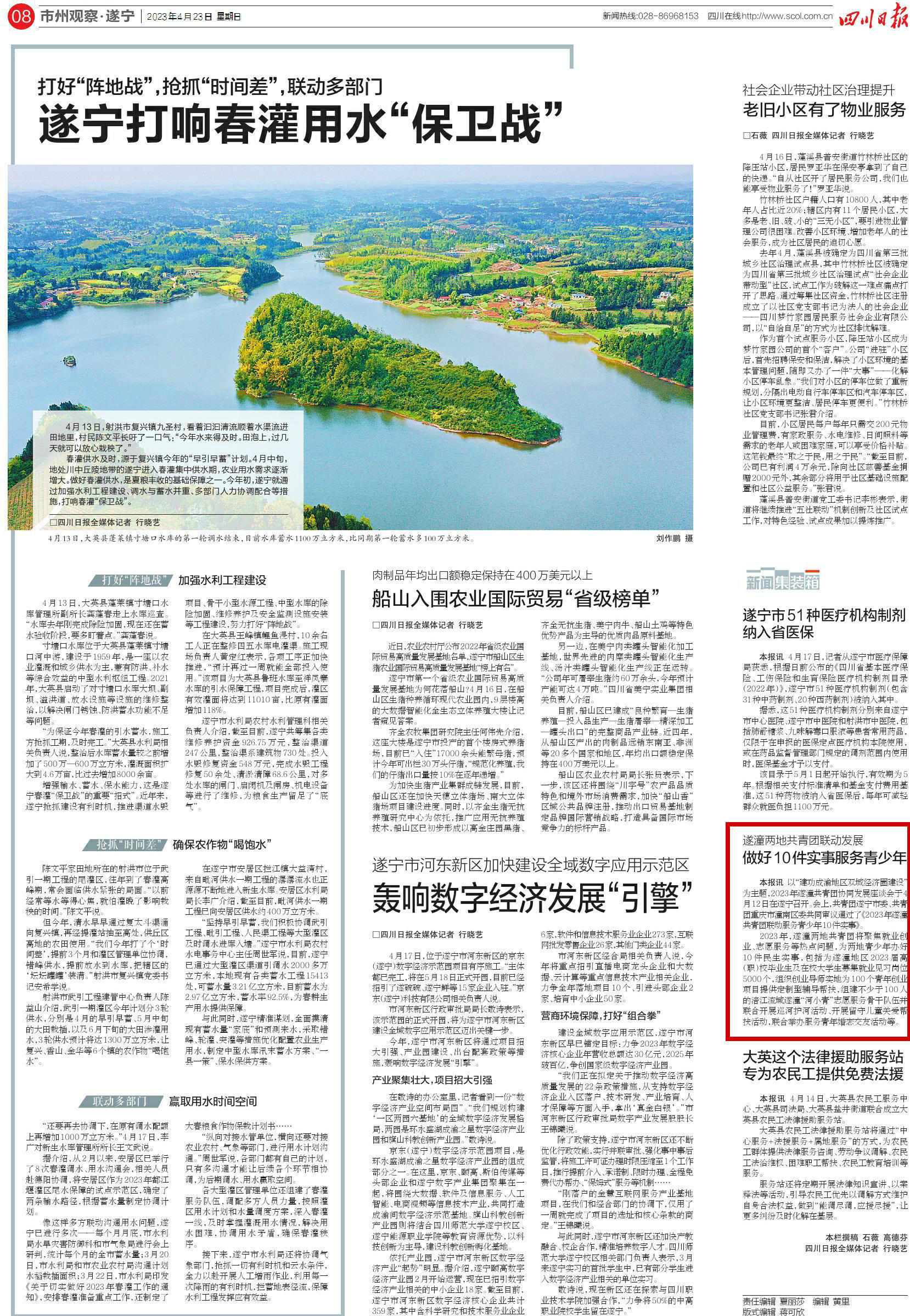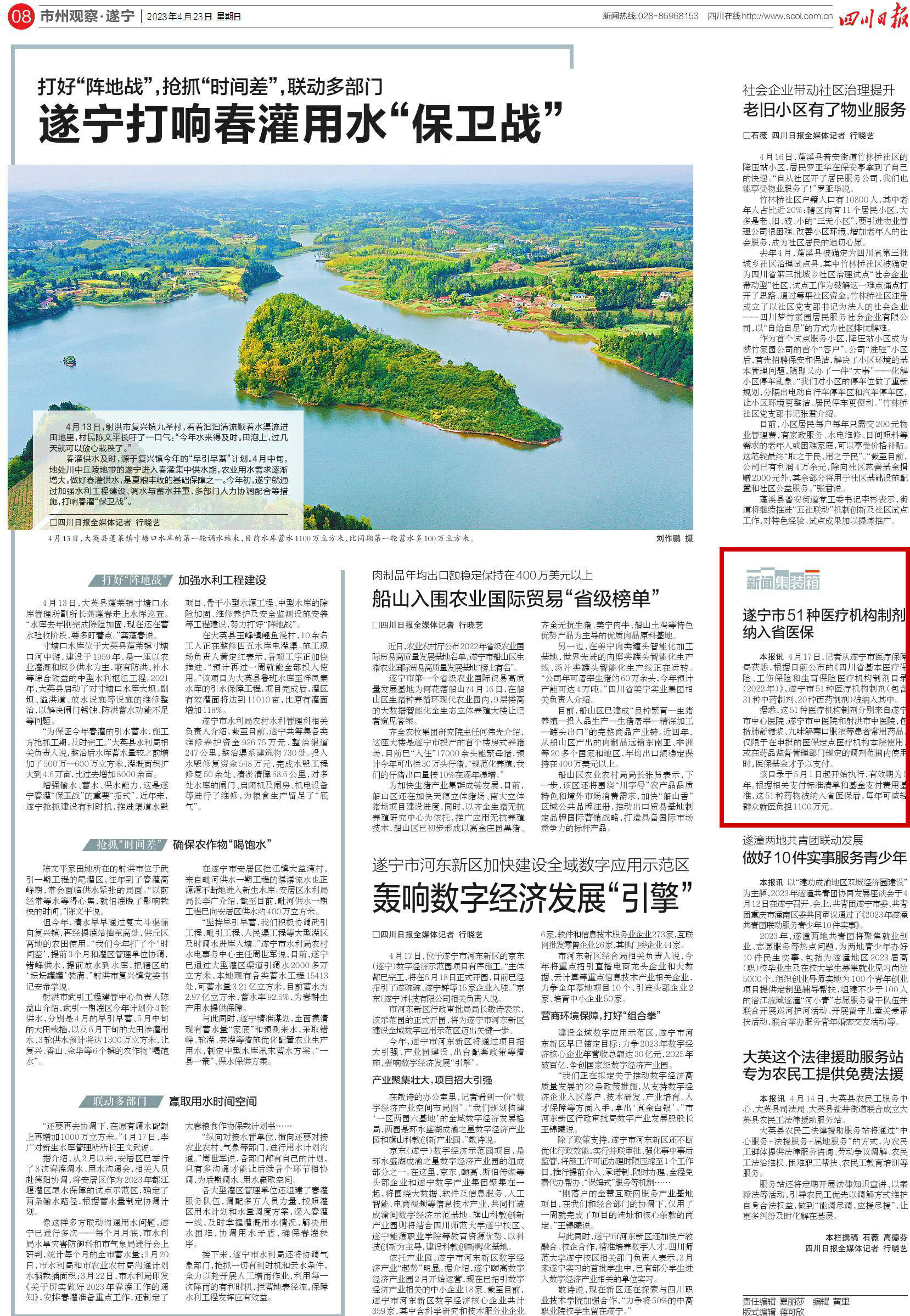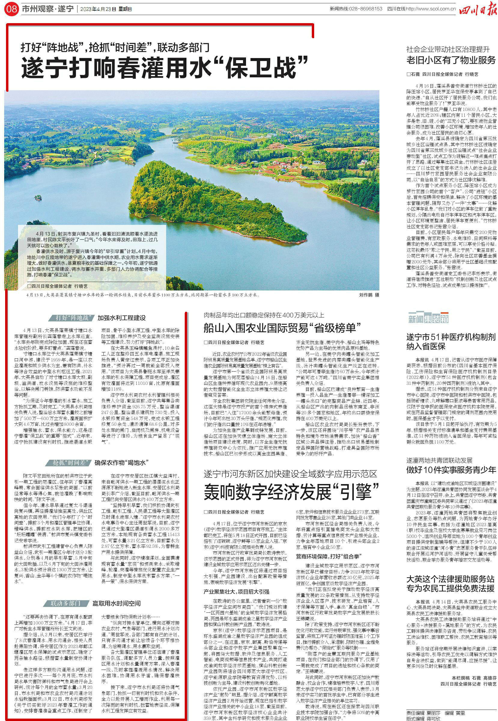 四川日报08版《打好“阵地战”,抢抓“时间差”,联动多部门——遂宁打响春灌用水“保卫战”》