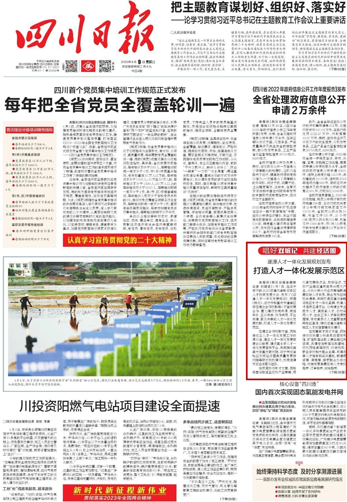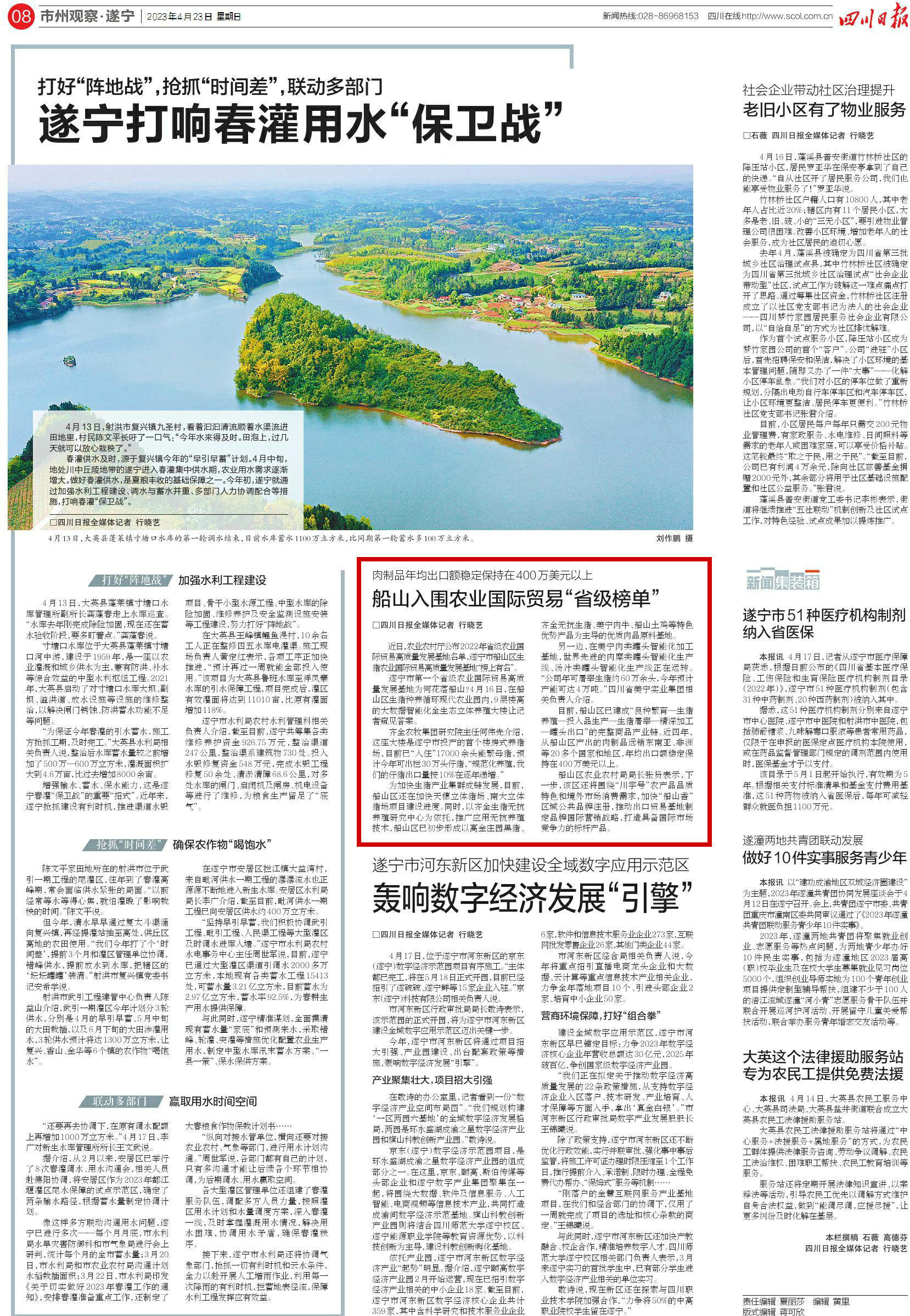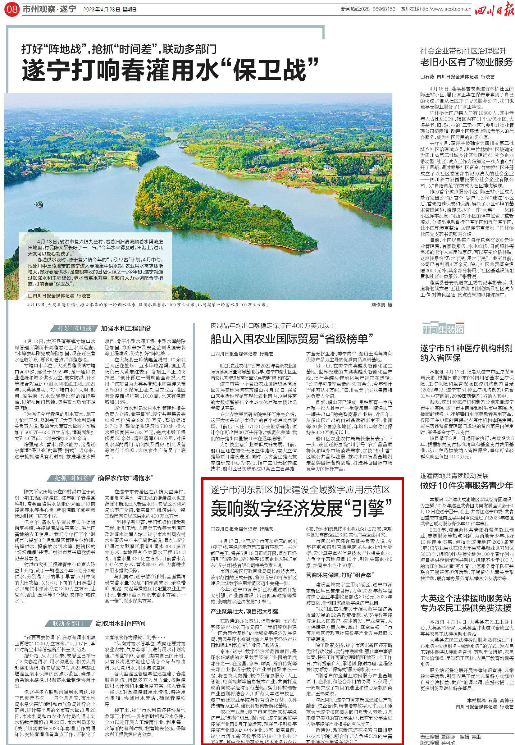 四川日报08版《打好“阵地战”,抢抓“时间差”,联动多部门——遂宁打响春灌用水“保卫战”》