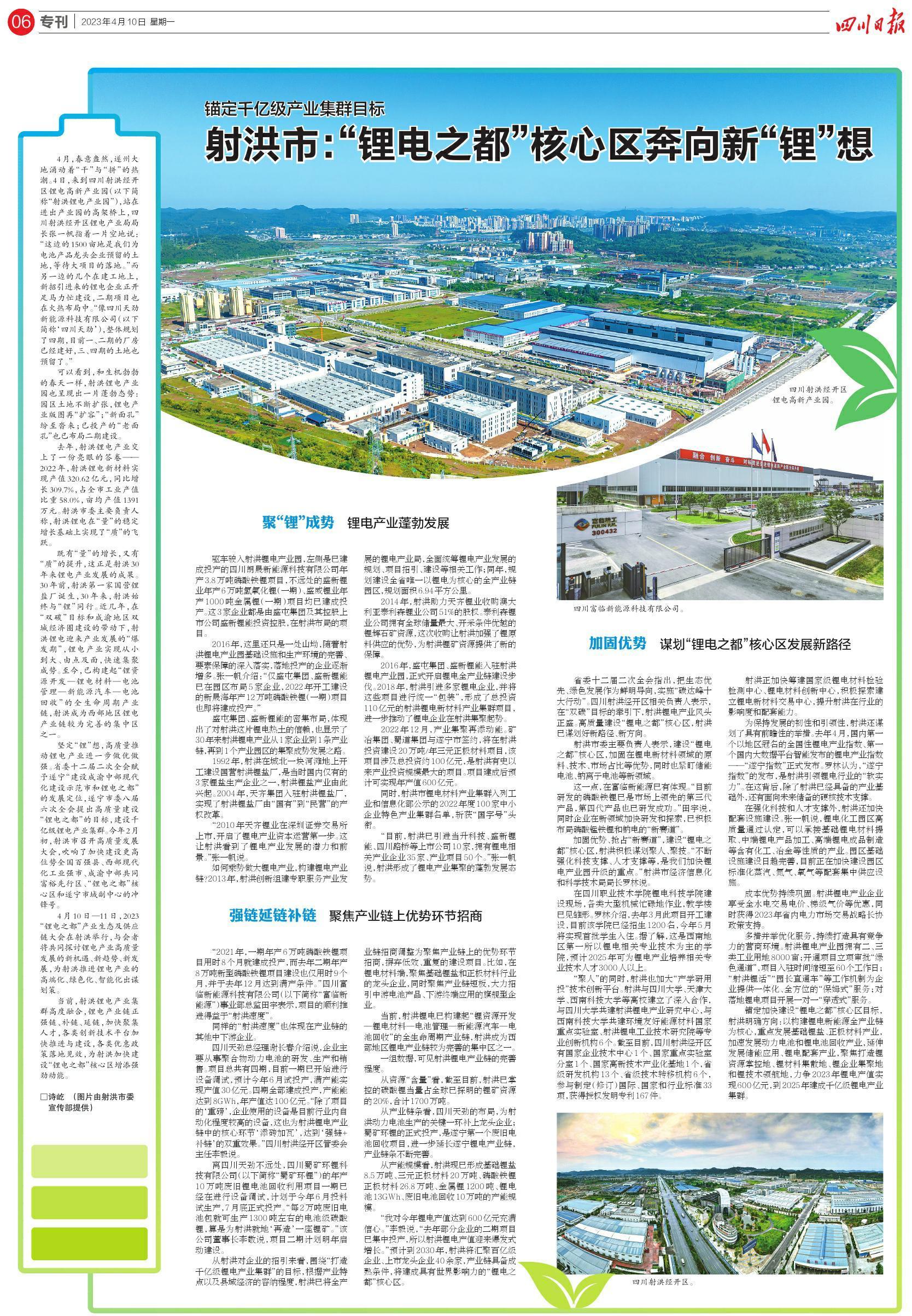 四川日报06版《锚定千亿级产业集群目标 射洪市:“锂电之都”核心区奔向新“锂”想》