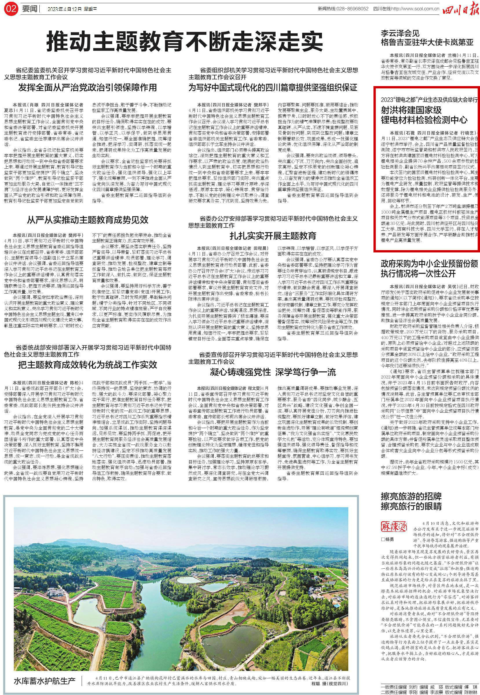 四川日报02版《2023“锂电之都”产业生态及供应链大会举行 射洪将建国家级锂电材料检验检测中心》