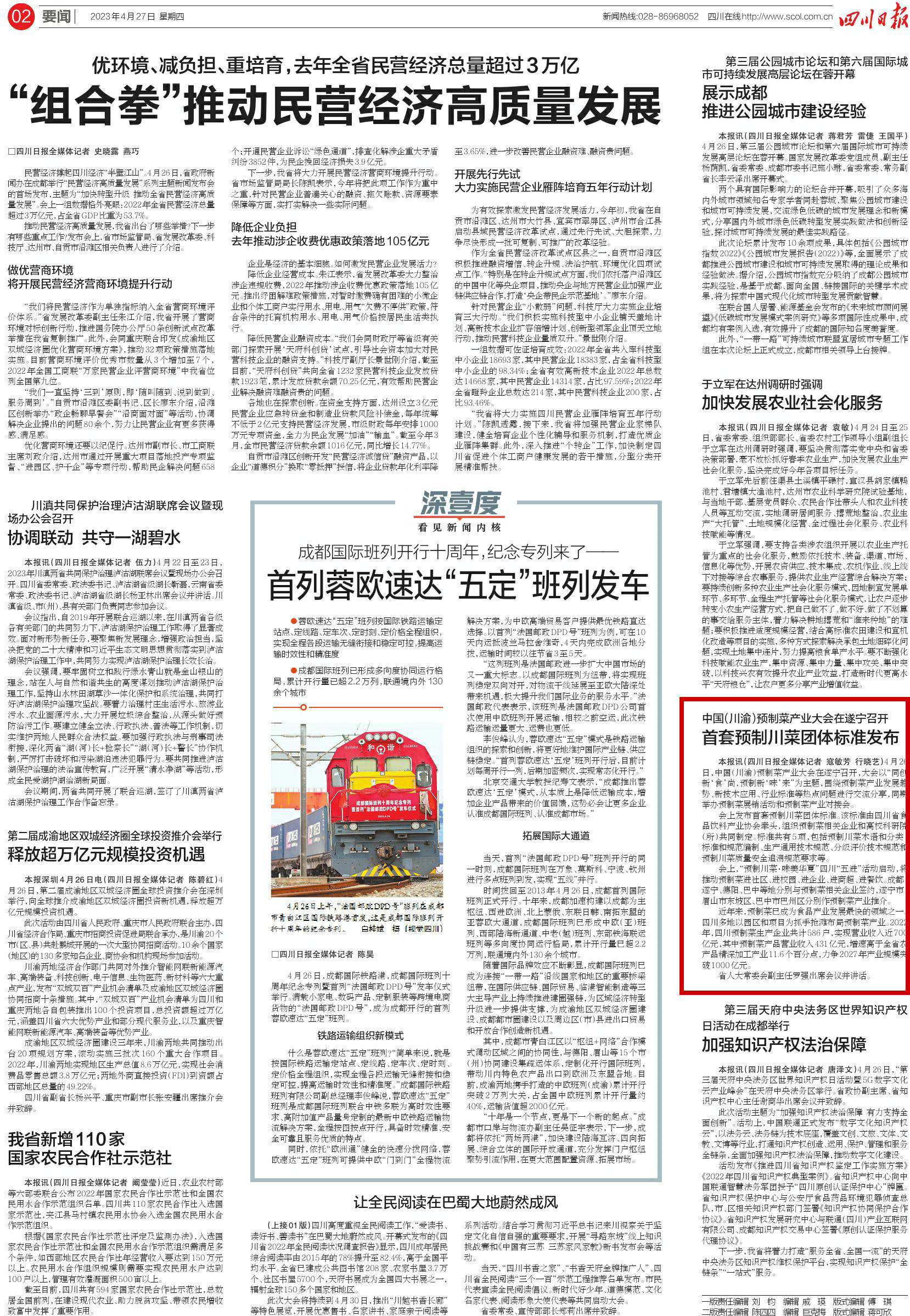 四川日报02版《中国(川渝)预制菜产业大会在遂宁召开 首套预制川菜团体标准发布》