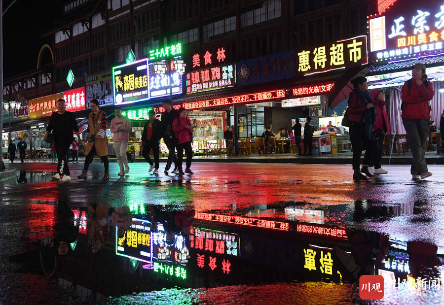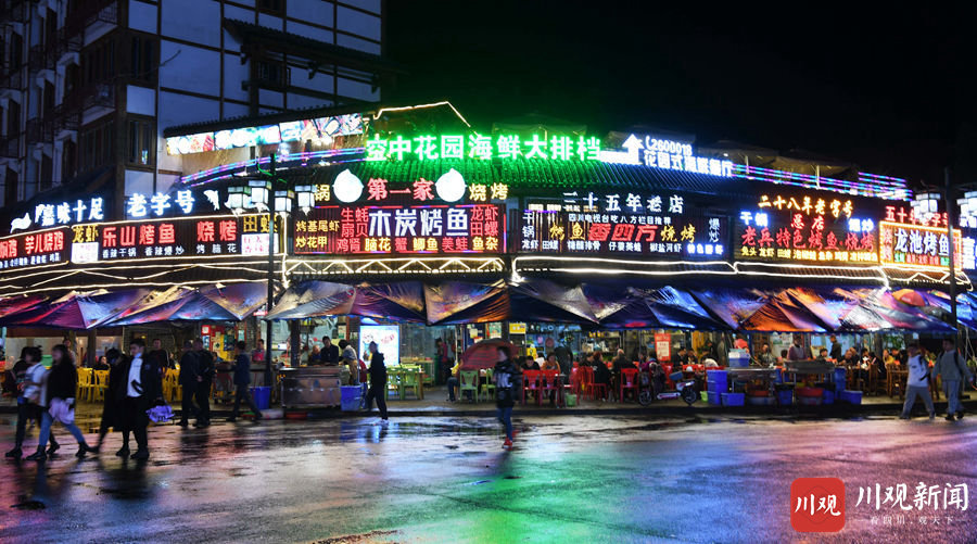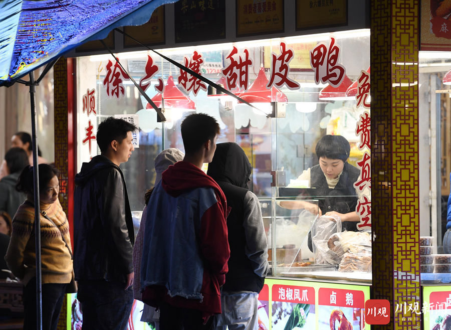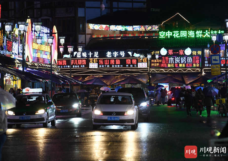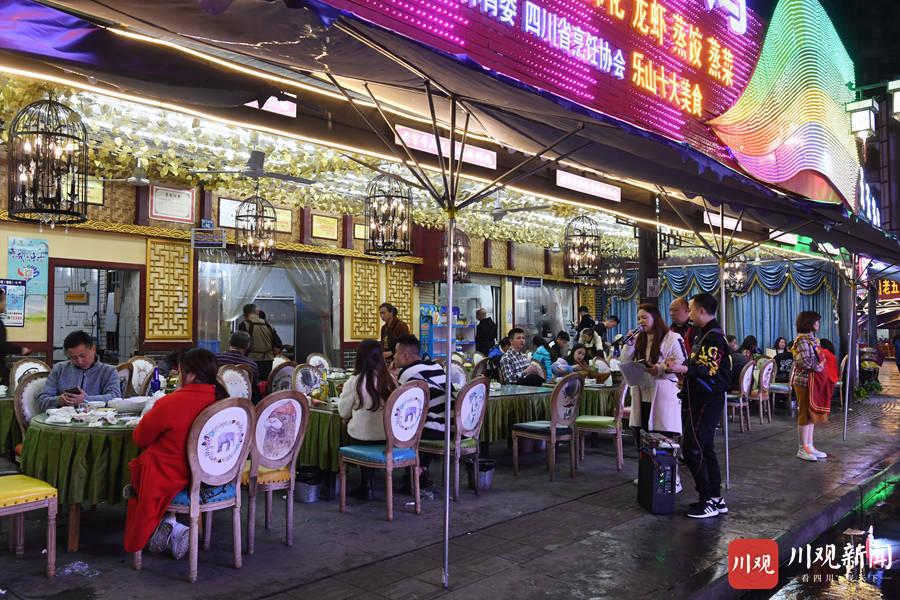 10月20日,夜幕降临,华灯初上,张公桥好吃街车水马龙,人声鼎沸。这条不过百丈街道遍布上百家美食餐饮,麻辣烫、钵钵鸡、跷脚牛肉、甜皮鸭……乐山本地的特色美食琳琅满目,吸引着南来北往的客人。