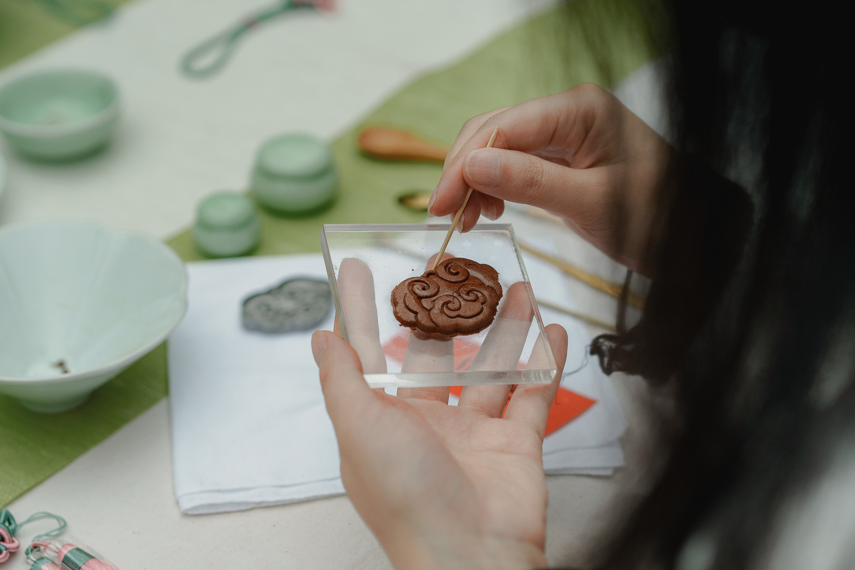青城山七只雀溪畔温泉民宿现场演示制作古法香牌。受访者供图