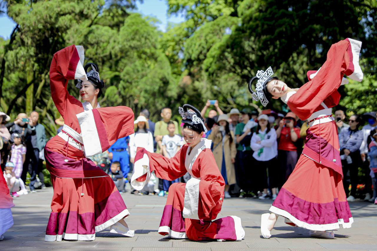 都江堰“旅游热”的背后,是该市打造新消费场景、激发消费新活力的创新体现。都江堰市文化体育和旅游局相关负责人介绍,该市热门景区景点、主题乐园等持续发力,结合游客需求特点丰富沉浸式文旅消费新业态。都江堰市文旅集团推出观凤桥“文创体验馆”“天府源老茶馆”等全新网红地标,汉服潮玩、NPC场景扮演等沉浸式体验活动,搭建现代与历史的对话场景。青城山—都江堰景区推出沉浸式秦汉文化探寻活动,通过趣味十足的快闪表演向游客展现秦汉文化的魅力。文庙开展“六艺体验、礼敬先贤”中华国学精粹体验活动,游客在游园过程中参与体验“祭拜孔子”“投壶”“射箭”“汉礼祈福”等活动。