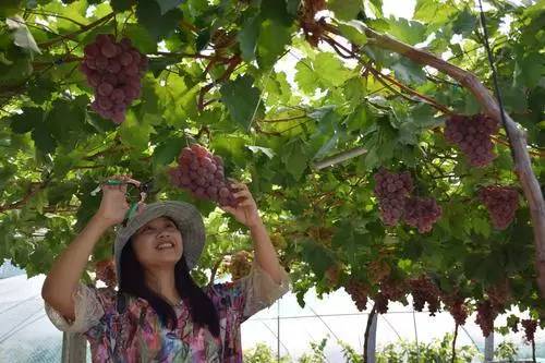 新民镇茗铂农业,面积220亩,主要品种有贵妃玫瑰、夏黑,采摘时间8—10月。