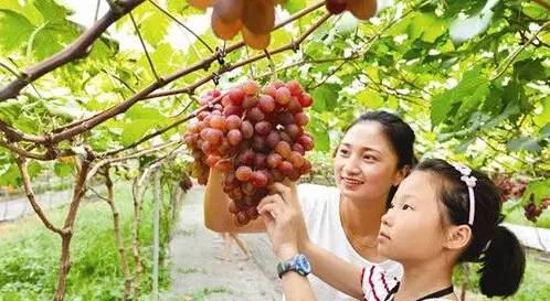 桤泉镇建华葡萄庄园,面积500亩,主要品种有红提、夏黑、巨美人指等,采摘时间8—9月。