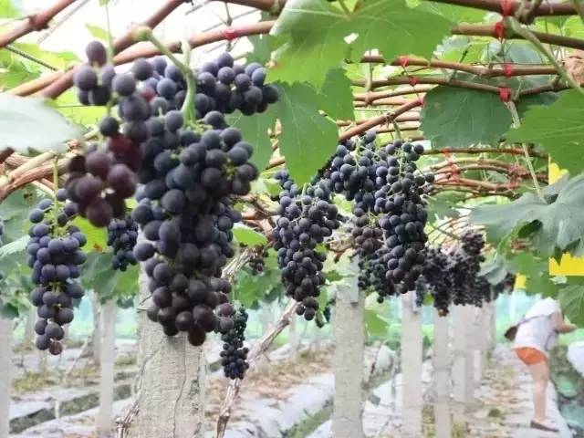 成都西镇绿色农业开发有限公司,面积103亩,主要品种有黑珍珠、醉金香、白罗莎、大紫王、金手指、巨玫瑰、美人指、维多利亚、安芸皇后等。
