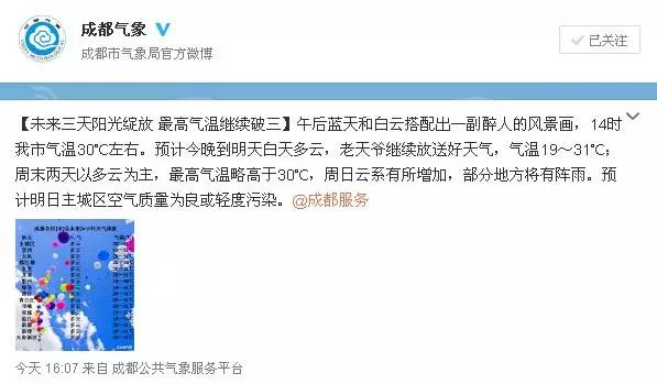 未来三天,大成都范围都是一片晴好!