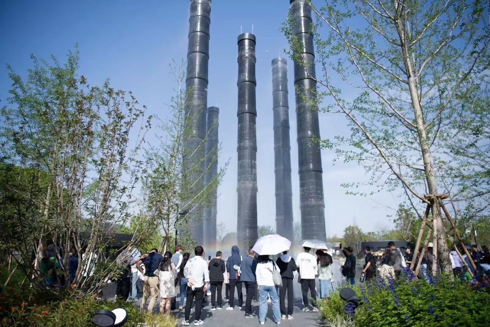 “五一”期间,成都SKP打开地面部分公园层,其中“生机之塔”收获众多关注