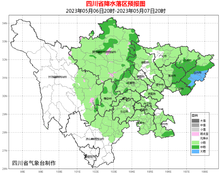 预计今天晚上,盆地大部阴天有阵雨或雷雨,其中达州、广安、南充3市及西北部山区有中雨,个别大雨;明天白天,达州、广安2市局部有中雨。
