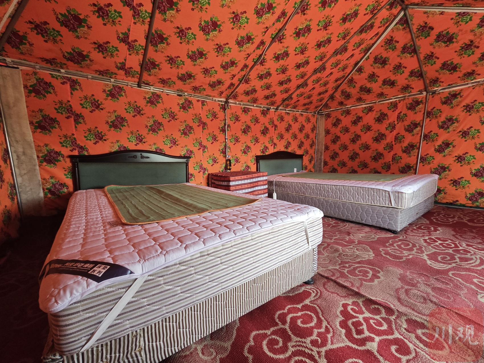 同样对今年旅游业发展充满信心的还包括俄色村民阿更。“我利用院坝布局了10顶帐篷,每个帐篷里,两张床,还有电热毯。”阿更说,为了将装修升级,今年准备将家里的300来头牦牛出栏100头。