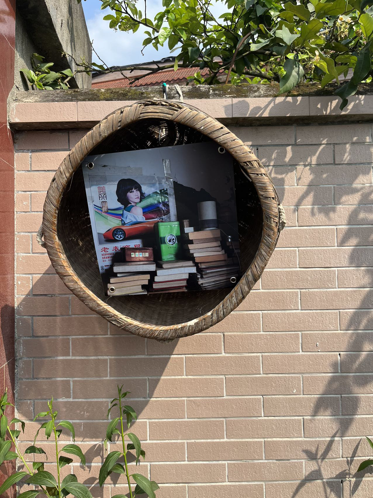 于是,“点一盏灯,照亮孩子回家的路”,成了策展团队共同的心愿。他们用旧箩篼和灯泡制成灯箱,挂在村道两旁每家每户门口,夜晚亮起时,让人觉得十分温暖。尤其特别的是,每个灯箱上还有一张灯片,图案是最能展现这户村民特点的场景。例如,有的村民做饭特别好吃,灯片上便是厨房灶台;有的村民家中老人喜欢做鞋垫,灯片上便是鞋垫成品;有的村民喜欢阅读,灯片上便是堆满书籍的床头。