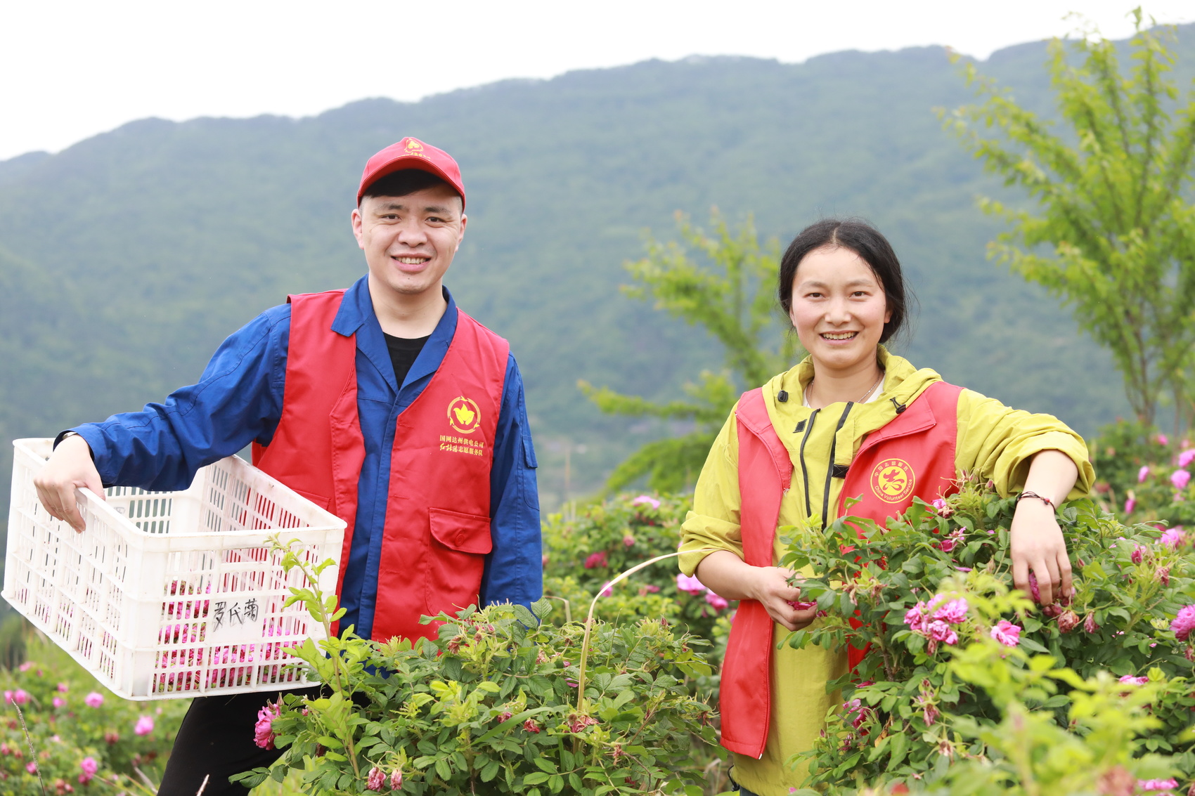 宣汉县大成镇千岭村是2022年度省级乡村振兴示范村,同时也是2023年度国网宣汉县供电公司创建的电气化乡村振兴示范村。由于地处偏僻的山顶,该村利用地形地貌,大力发展玫瑰、牡丹、芍药,并套种脆李等产业,以“农村生态旅游+产业增收”双向发展模式,其中占地450亩的玫瑰园,是全村集体产业收入的70%。