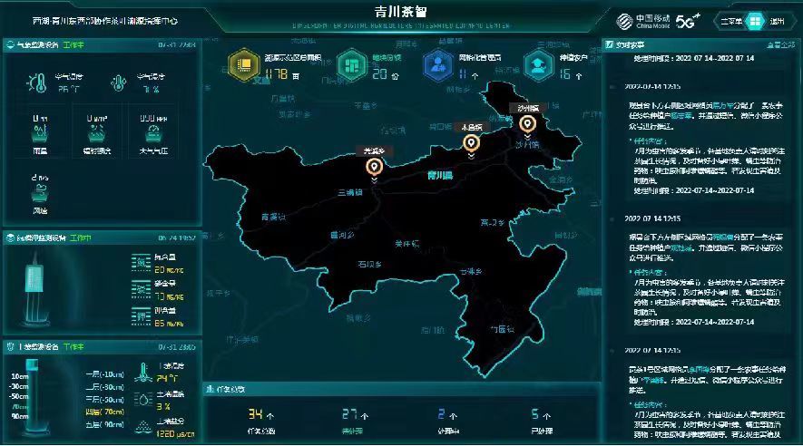 马浩强介绍,2021年,以新一轮东西部协作为契机,青川县、杭州市西湖区投入东西部协作资金150万元,在青坪村“白叶一号”茶叶产业基地中,选取150亩茶园开展数字化种植管护试点,打造“白叶一号”数字驾驶舱。数字驾驶舱连接22个摄像头,可展示每个地块茶园茶苗的情况。数字驾驶舱能够采集茶叶生长环境数据,实现精准管护。