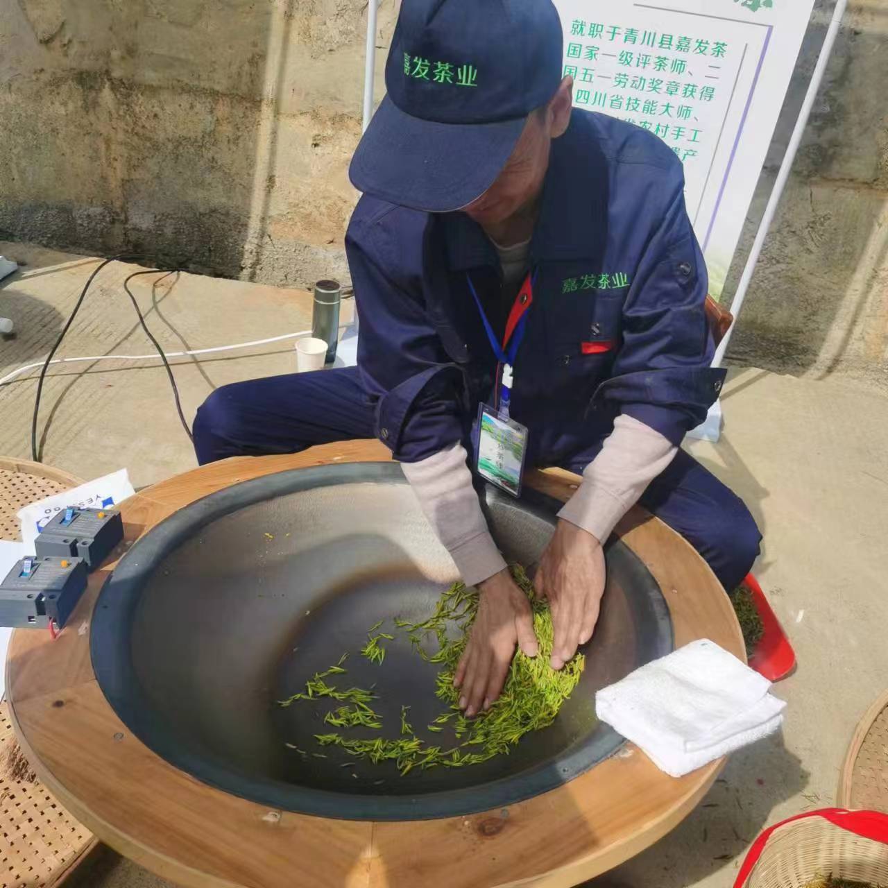 制茶师手工炒制“白叶一号”。青川县融媒体中心 供图