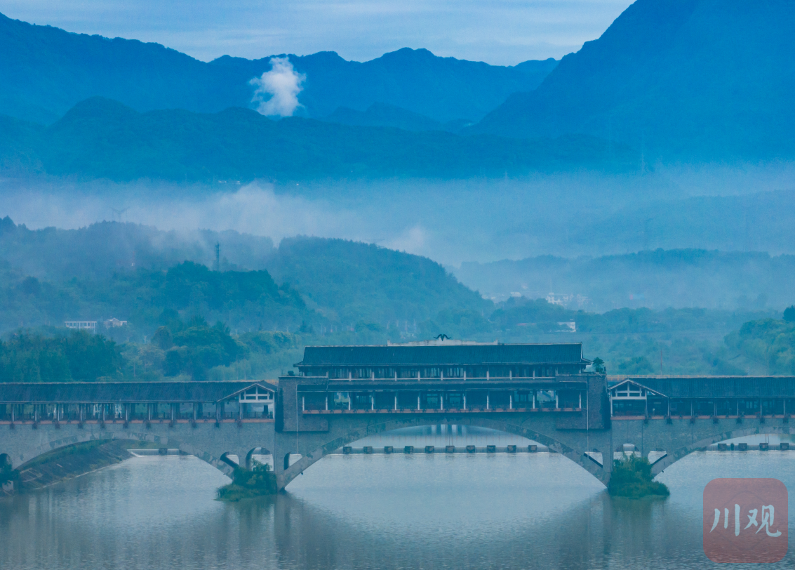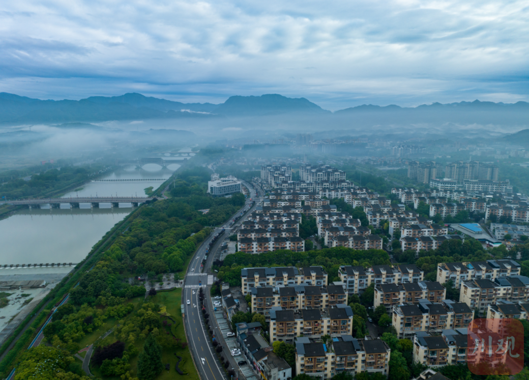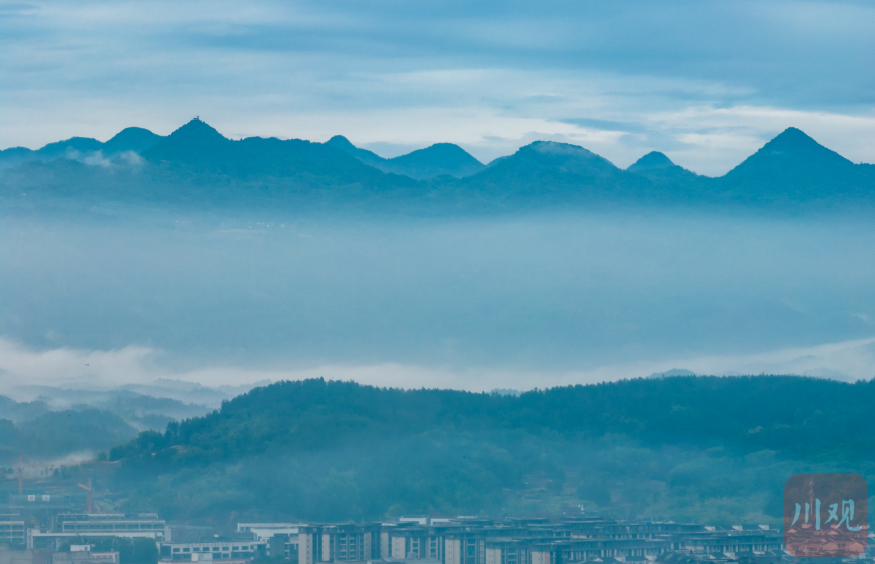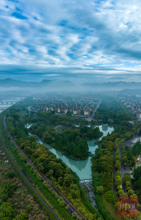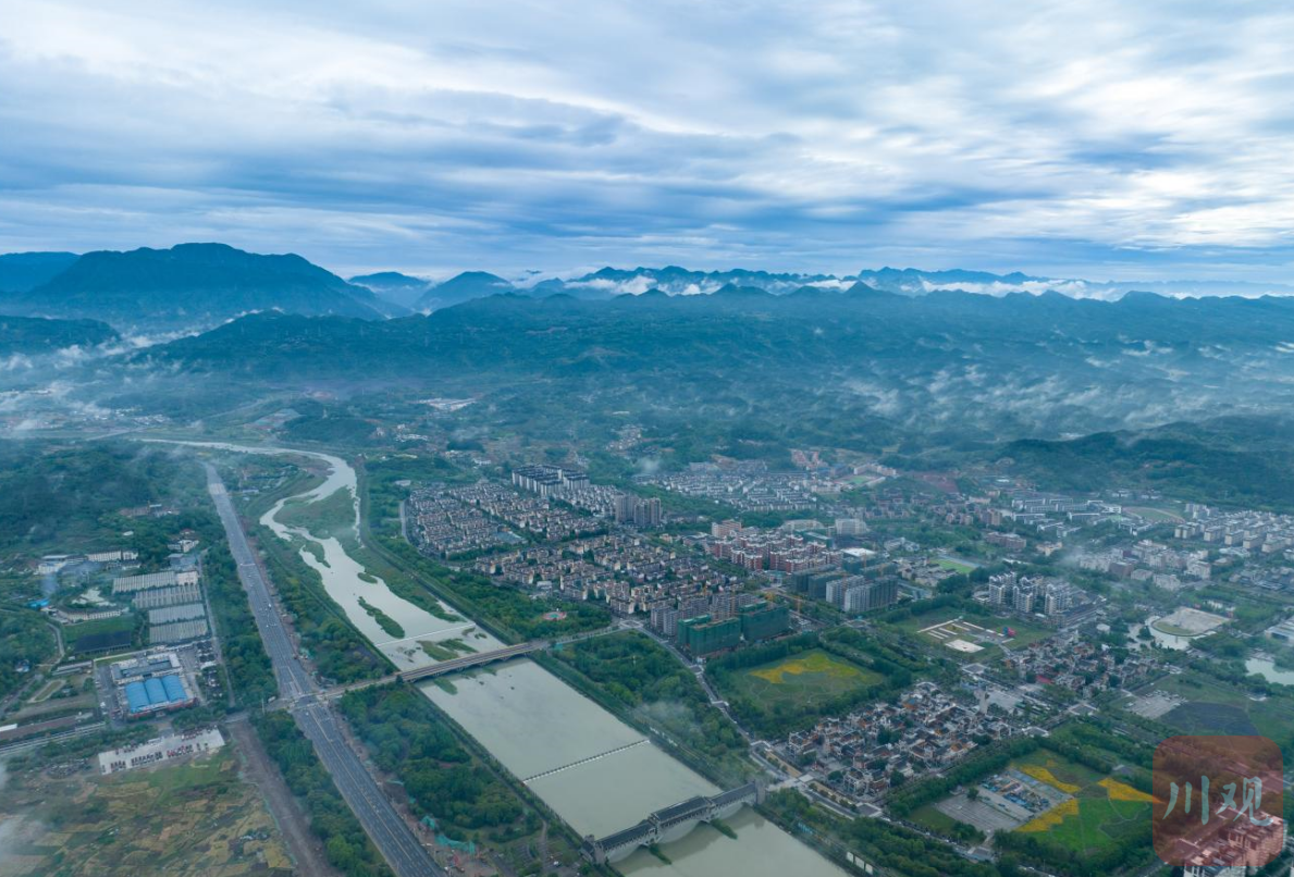 5月10日清晨,雨后的绵阳市北川羌族自治县新县城,四周的群山云雾升腾,山间树林郁郁葱葱,美景与新县城融为一体,如一幅徐徐展开的水墨画一样呈现在眼前。