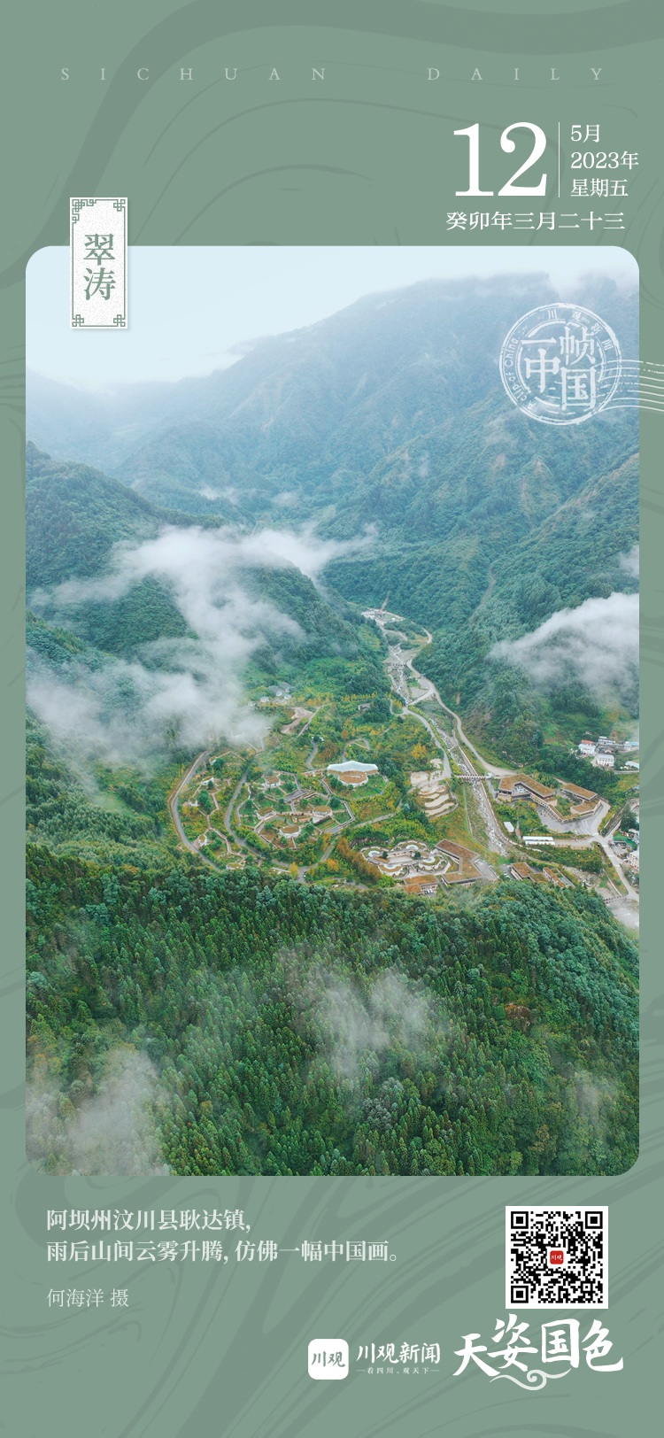 绿色寓意着干净清澈、勃勃生机,绿色是天府大地最美的底色。翠涛声动、松风阵阵,巴山蜀水宛如一幅中国画,我们从画中缓缓走来,带着不屈不挠的勇气和对美好生活的向往,继续向未来走去。