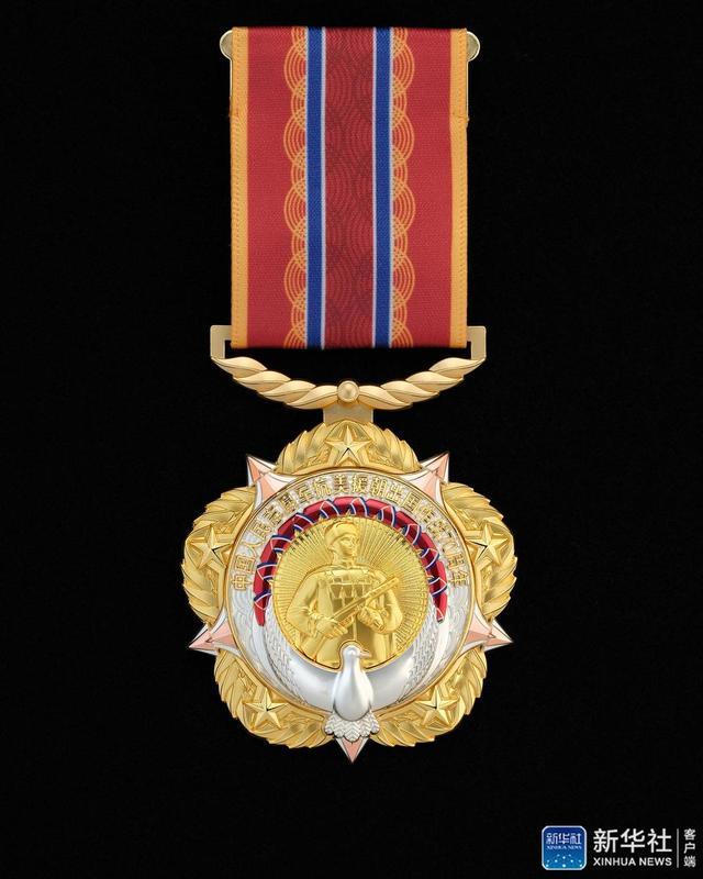 ↑这是“中国人民志愿军抗美援朝出国作战70周年”纪念章(10月3日摄)。新华社记者 李贺 摄