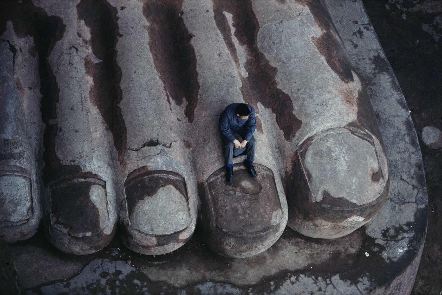 坐在乐山大佛的脚趾上,四川,1980(成都当代影像馆 供图)