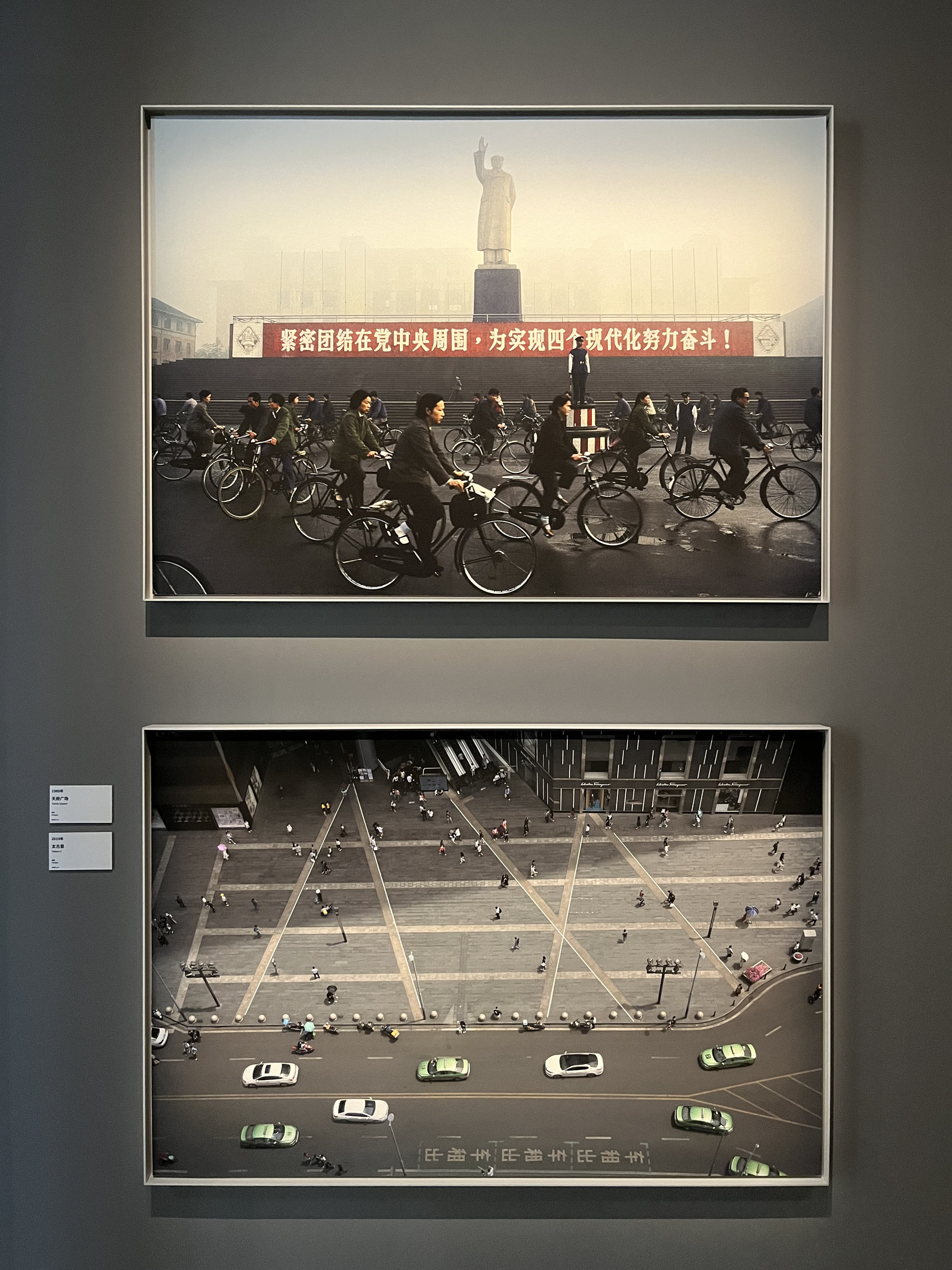 《布鲁诺·巴贝镜头下的中国,1973-2020》展出了1973-2020年间,巴贝数次游历中国拍摄的41张摄影作品,值得注意的是,其中近半数在川渝地区创作而成。步入展厅,第一张作品就是1980年的《坐在乐山大佛的脚趾上》,这也是他2019年出版的《中国的颜色》一书的封面作品。此外,现场还展出了巴贝于改革开放初期在四川拍摄的《乐山附近的稻田》《天府广场》《川剧演员》《茶社》《母子情》等作品,也有2019年成都IFS国际金融中心的车水马龙。透过巴贝的镜头可以看见这些年来四川和中国的巨变,以及他作为摄影师的人文关怀。