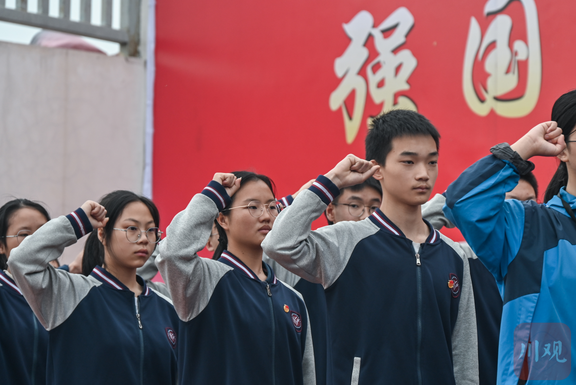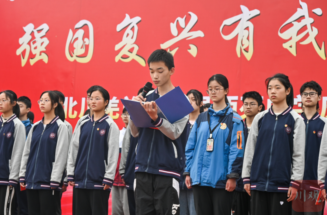 2023年4月28日,五四青年节前夕,王震茂(右二)与同学们一起宣誓入团。