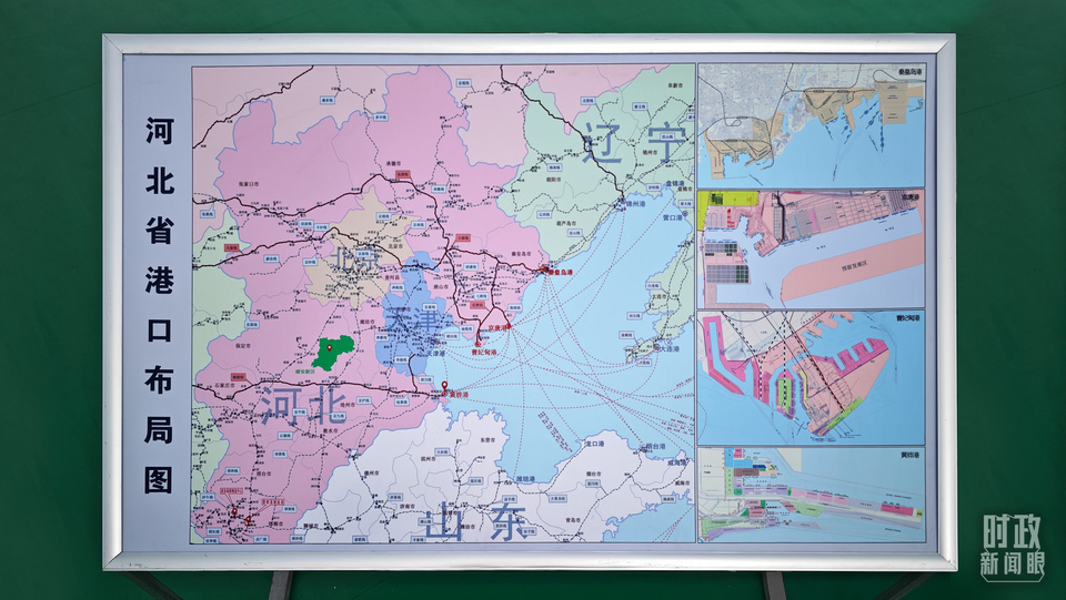 △河北省港口布局图展示。(总台央视记者彭汉明拍摄)