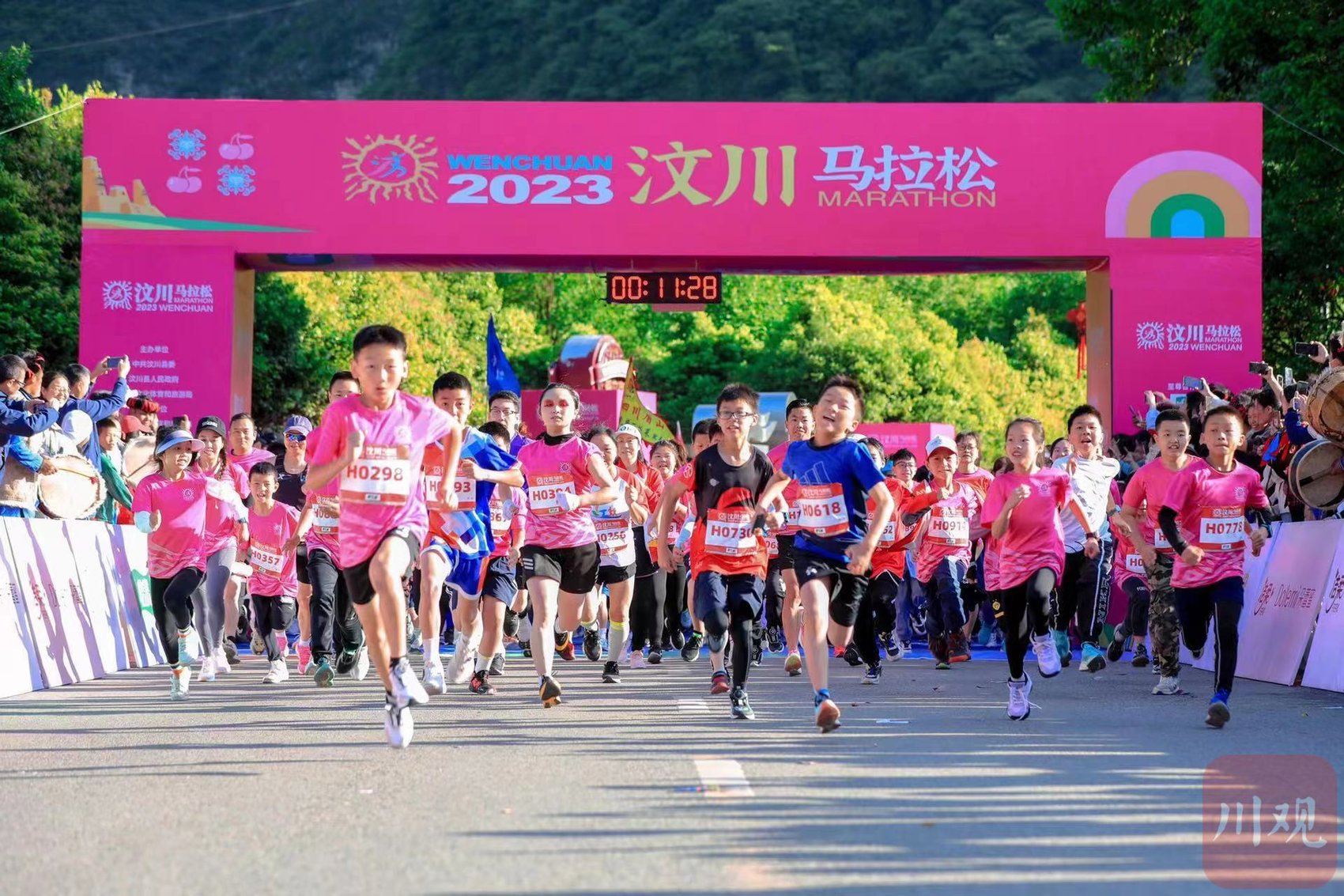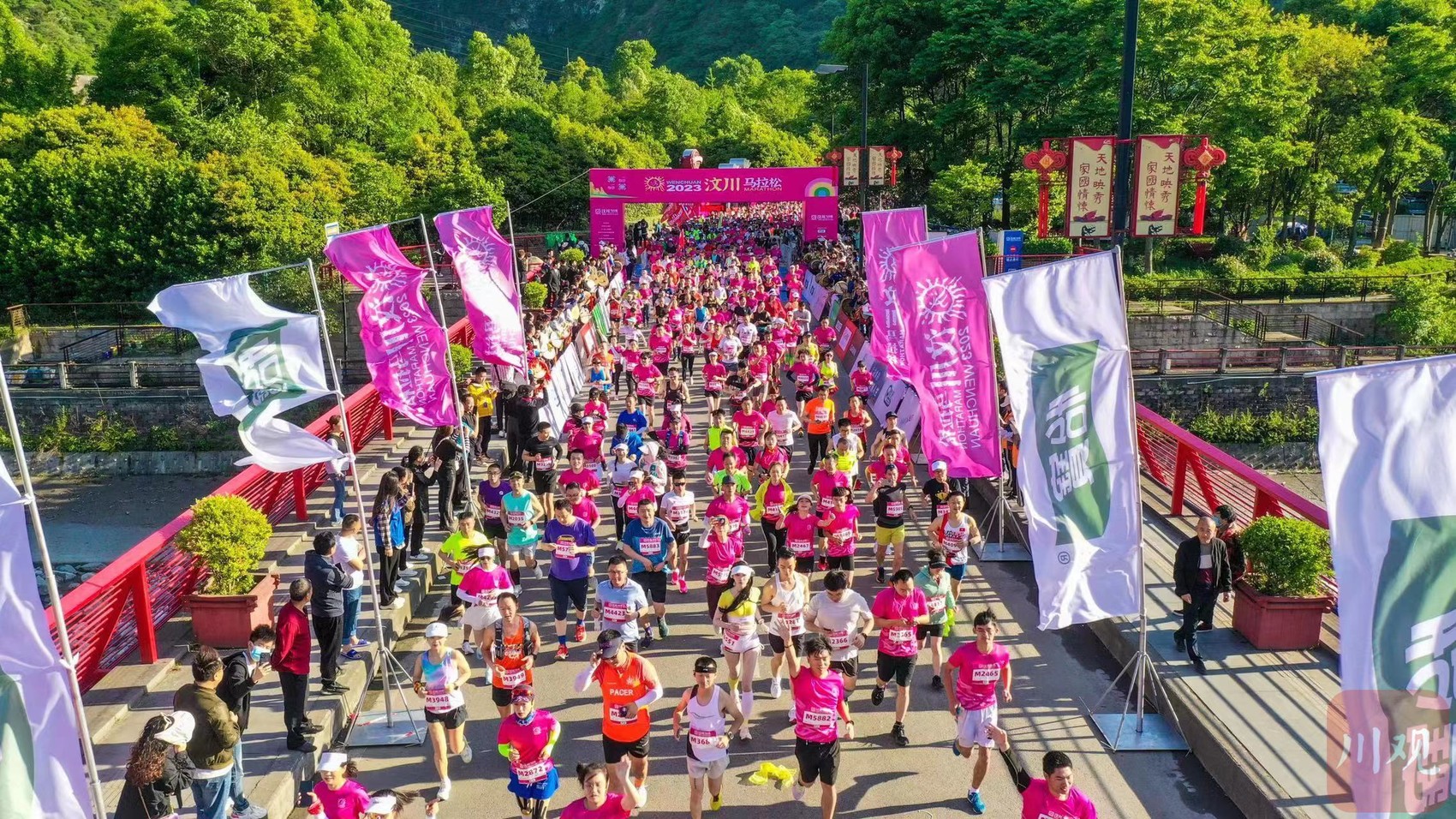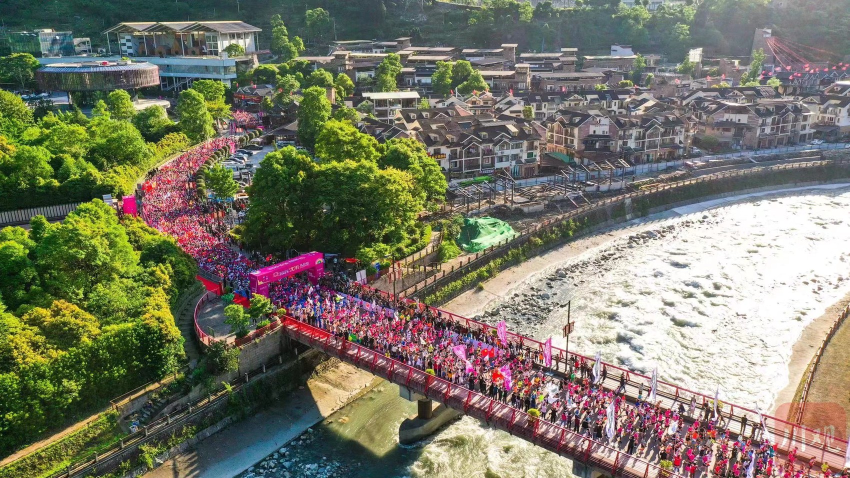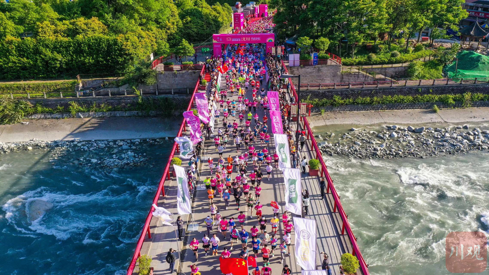 5月13日,2023汶川马拉松在汶川县映秀镇鸣枪开跑,来自澳大利亚、法国等11个国家和地区及全国各地的近万名跑者齐聚汶川,用脚步丈量汶川变迁。
