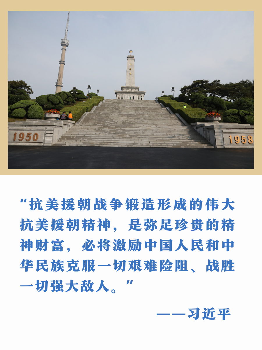 “抗美援朝战争锻造形成的伟大抗美援朝精神,是弥足珍贵的精神财富,必将激励中国人民和中华民族克服一切艰难险阻、战胜一切强大敌人。”