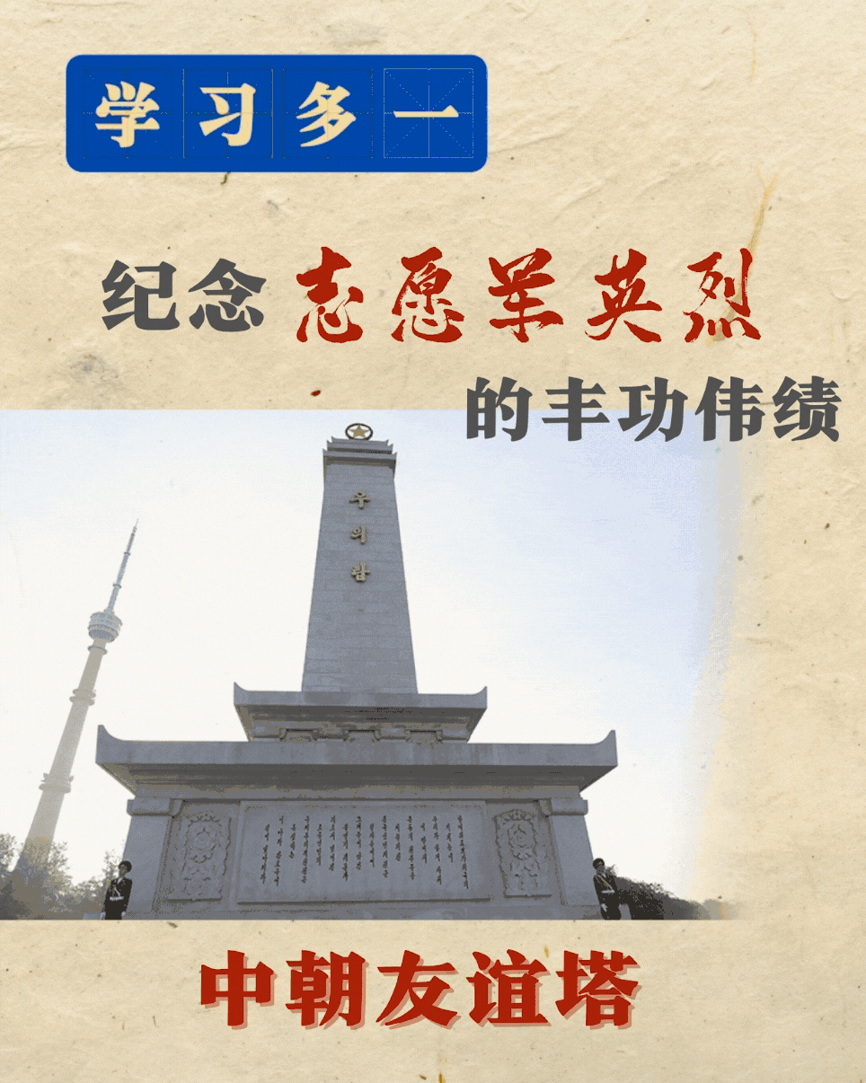 为纪念志愿军英烈丰功伟绩而修建的中朝友谊塔,矗立于朝鲜首都平壤市区牡丹峰麓,到此参谒的中朝各界人士络绎不绝。